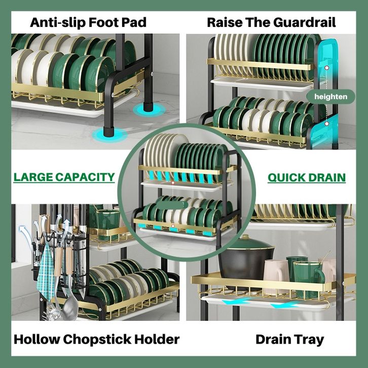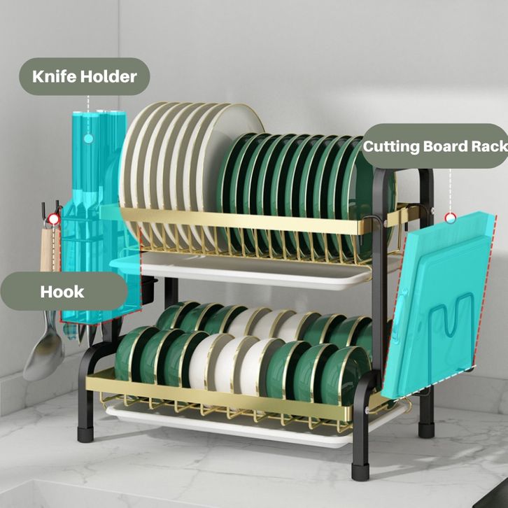 Rak Piring Stainless Minimalis Rak Piring Wastafel Stainless 2 Susun Serbaguna Tanpa Dp