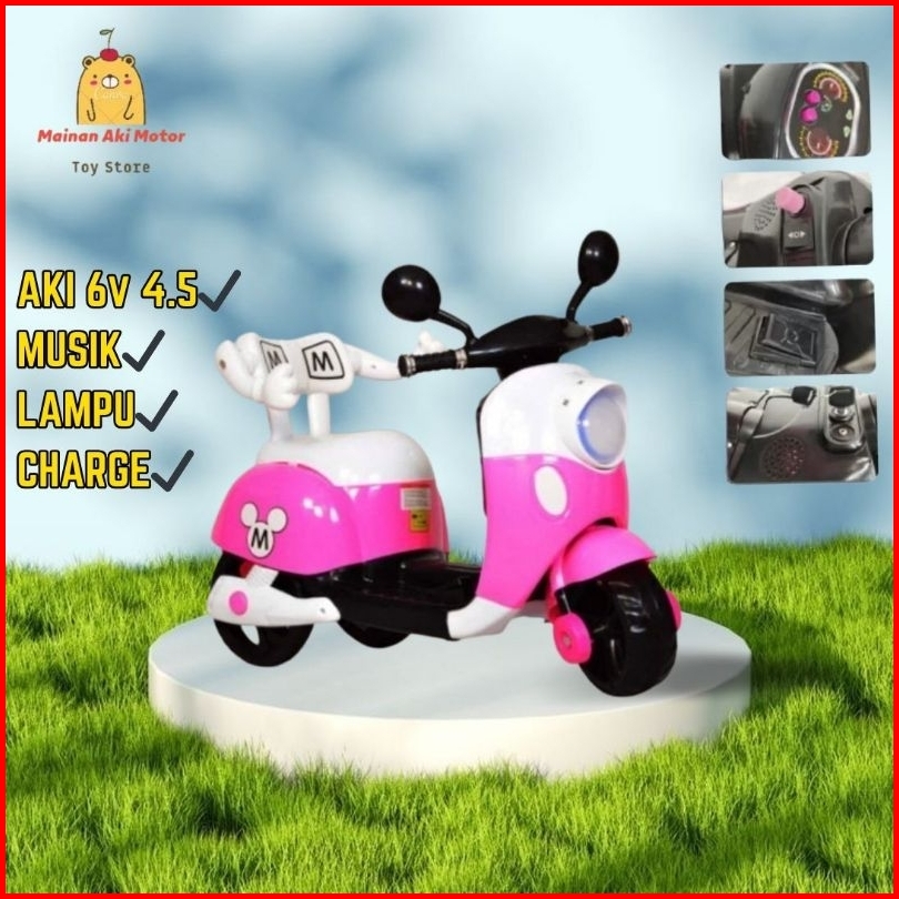 Mainan Motor Aki Anak Listrik Micky Mouse Musik Lampu Charge Hwl6688 Distributor Langsung