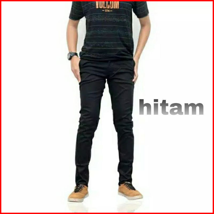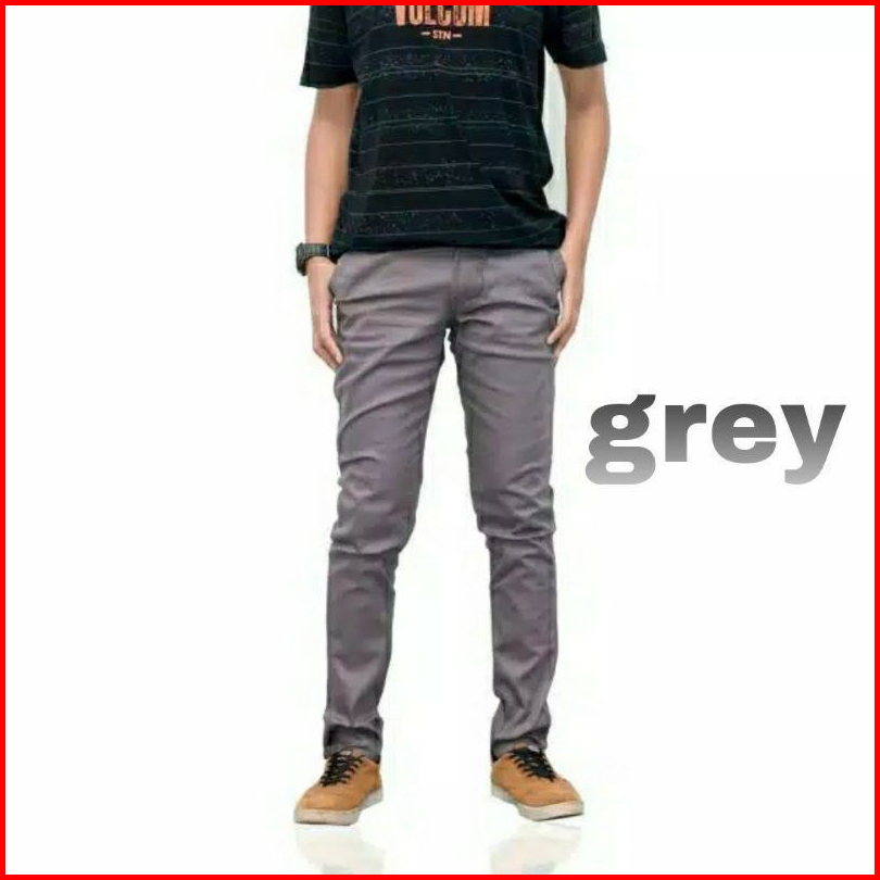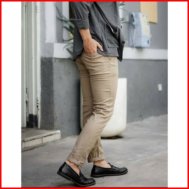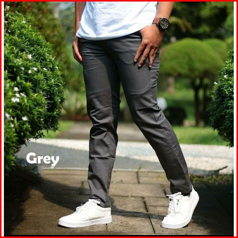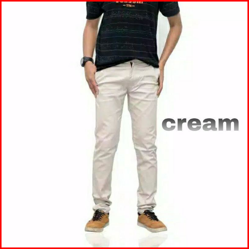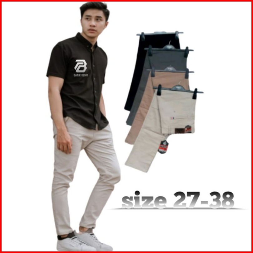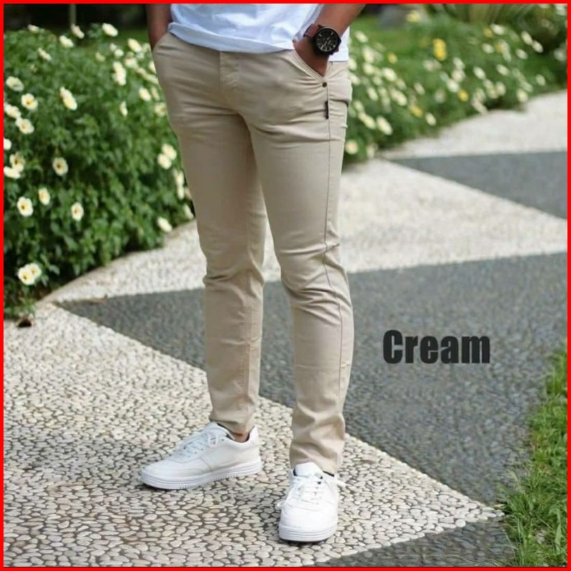 Celana Chino Panjang Pria Slimfit Kerjaharian Santai Casual Formal Hitam Abu Cream Mocca Size 27-38