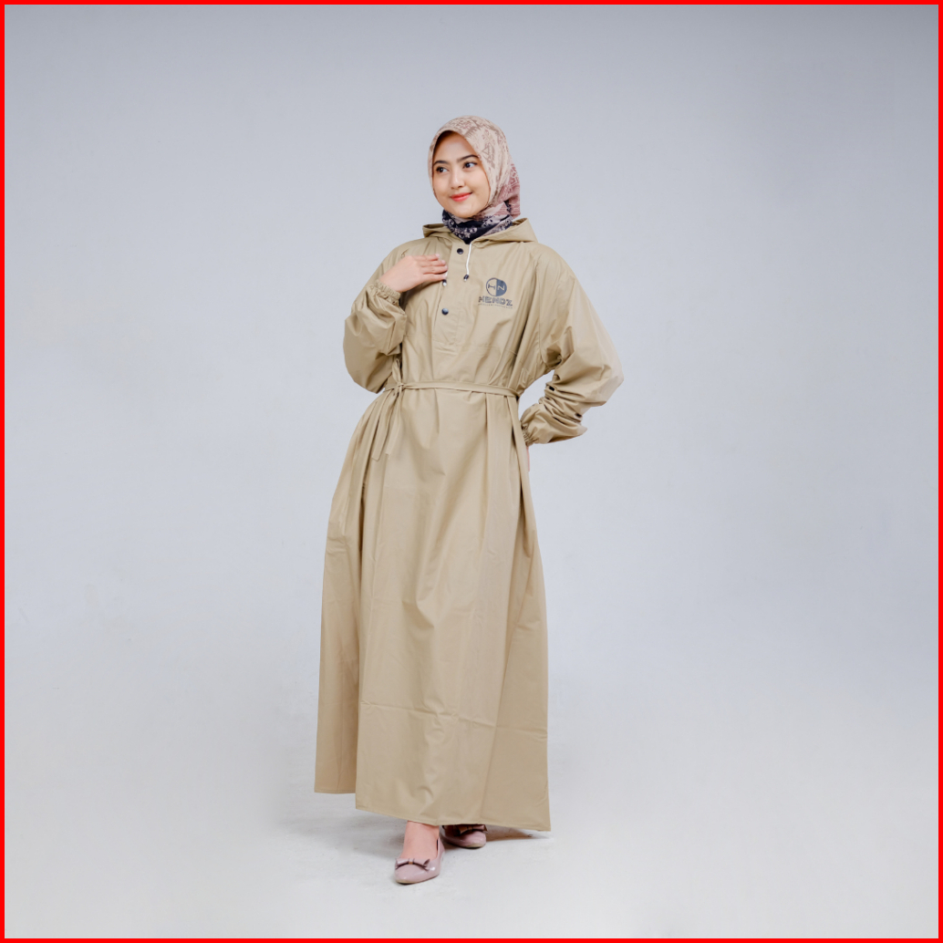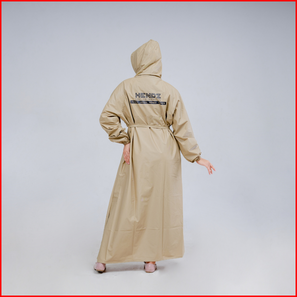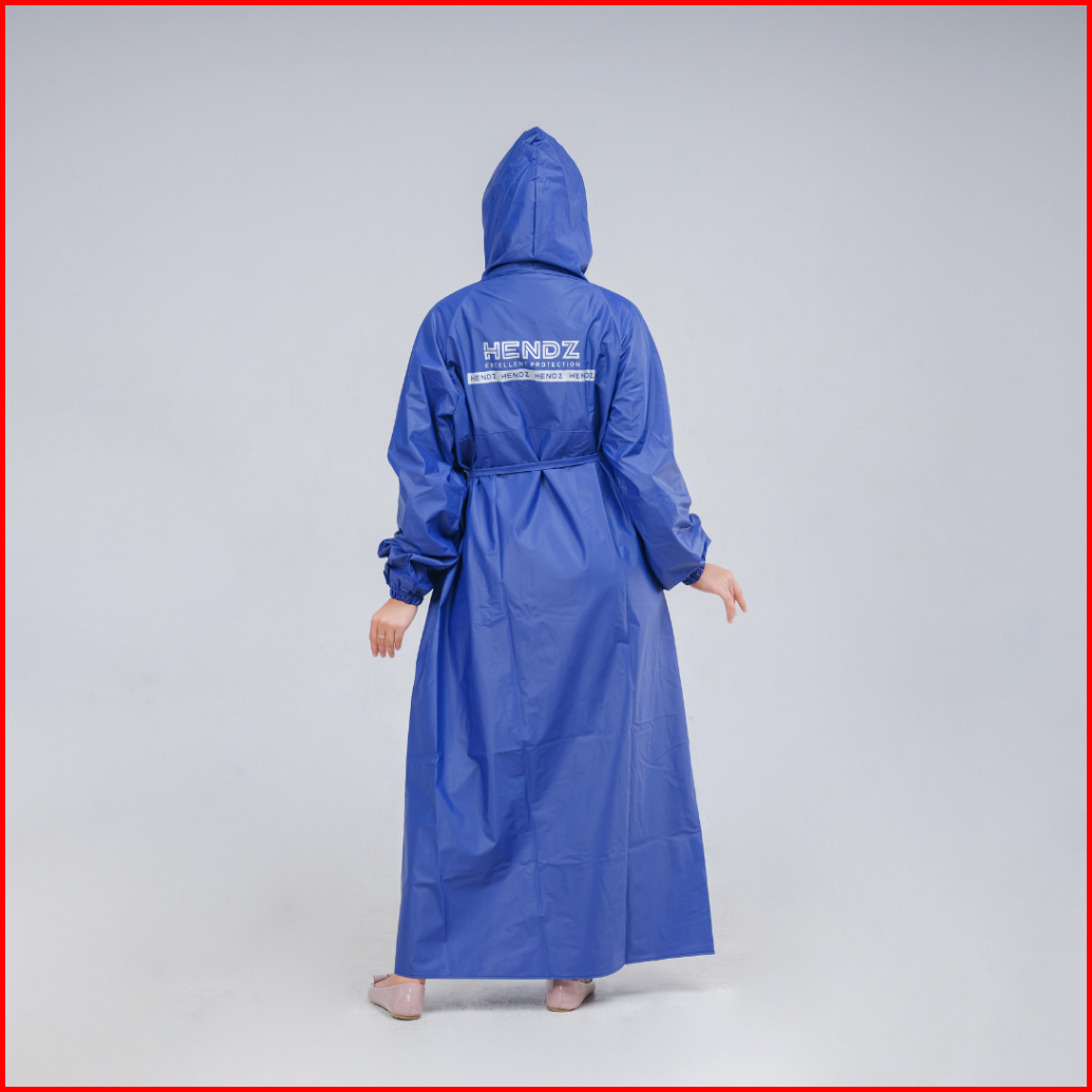 Jas Hujan Gamis Wanita Hendz Premium Raincoat Bahan Pvc 025 Tebal Elastis Kuat Waterproof Windproof