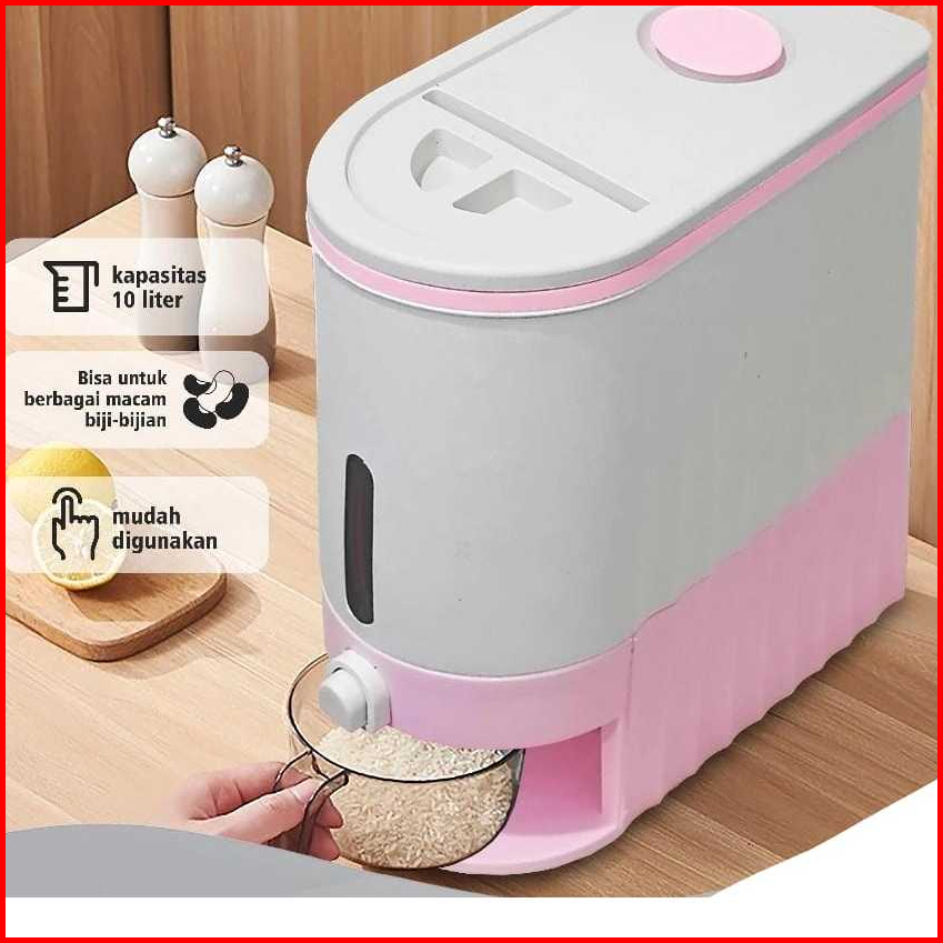 Dispenser Beras 6kg 10kg Tempat Kotak Penyimpanan Beras Otomatis Rice Box Free Wadah Pengering
