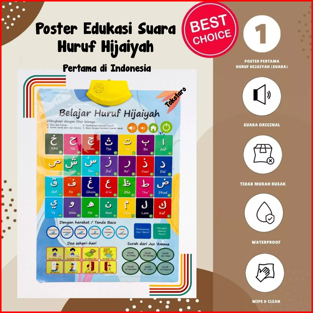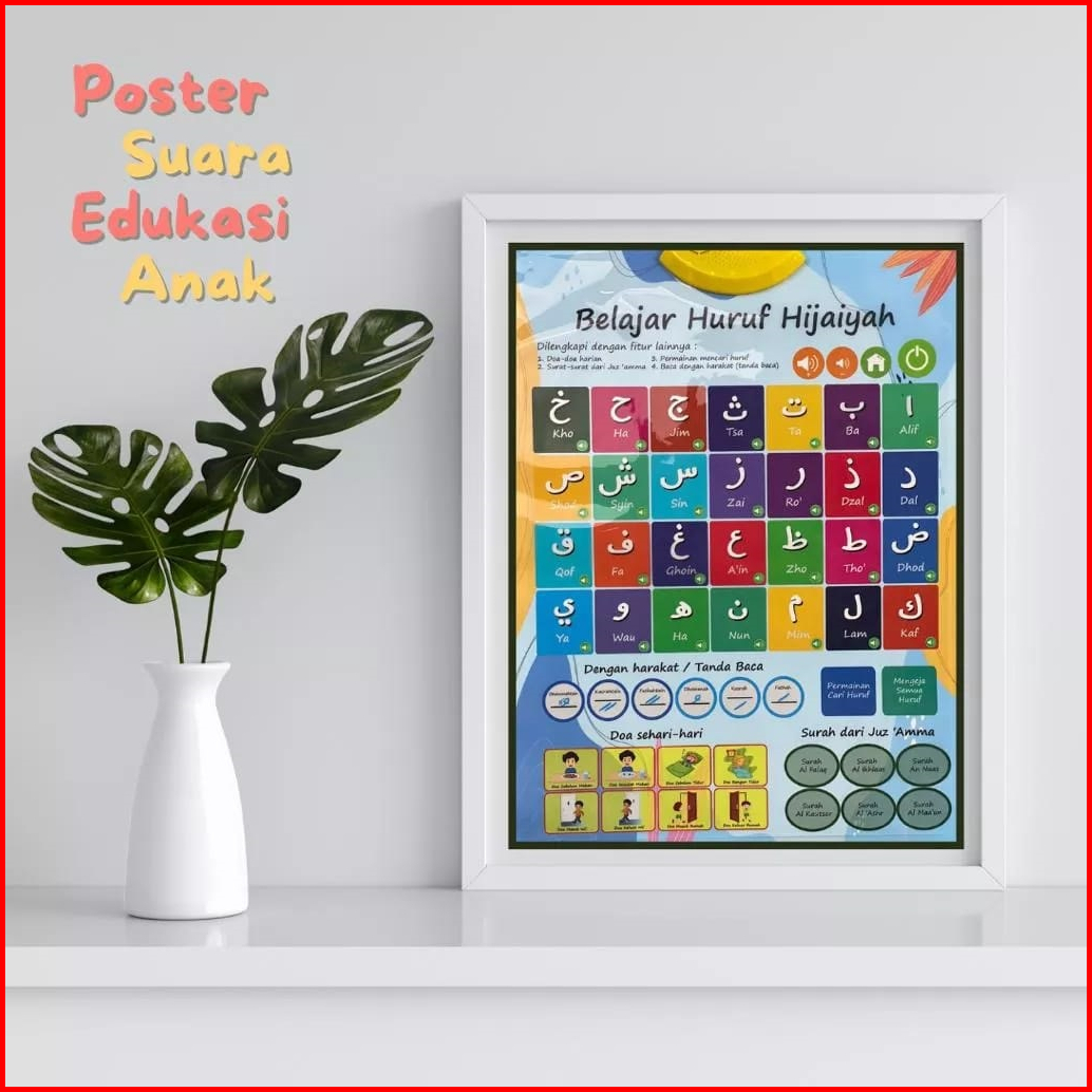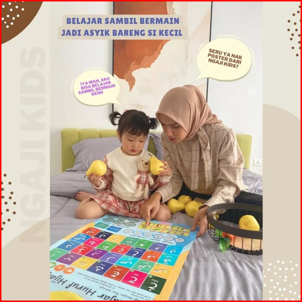 Poster Edukasi Anak Belajar Ngaji Hijaiyah Bersuara Wipe Clean