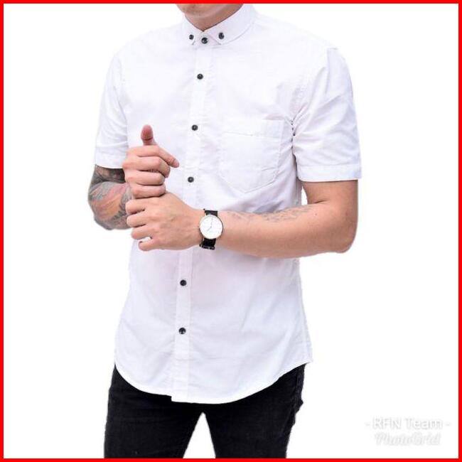 Kemeja Pria Boyi Top Man Lengan Pendek Kasual Formal Kerja Putih Hitam Navy Grey Warna White