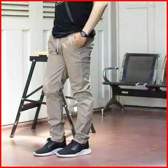 Celana Chino Panjang Pria Pinggang Karet Celana Rip Celana Cino
