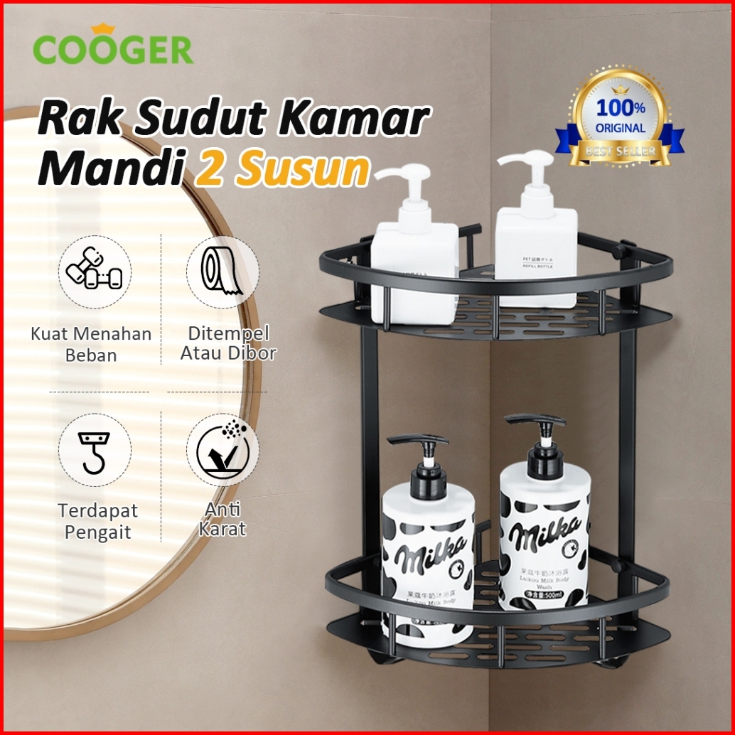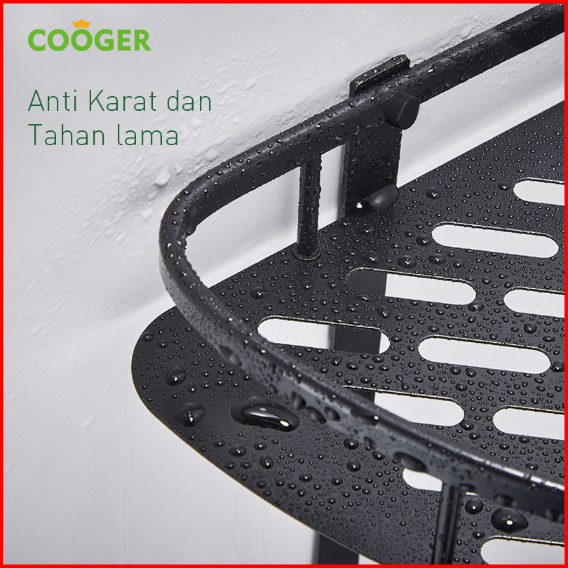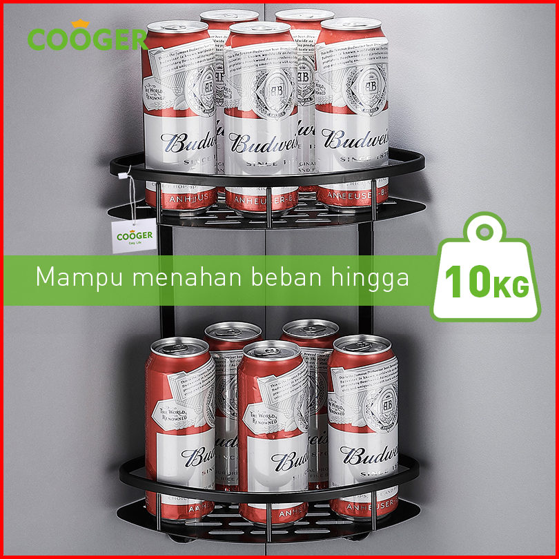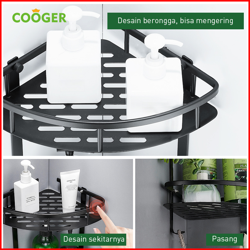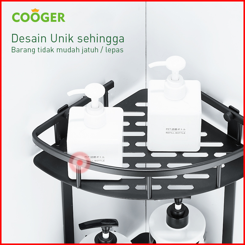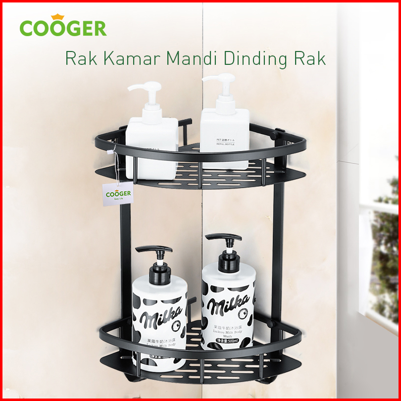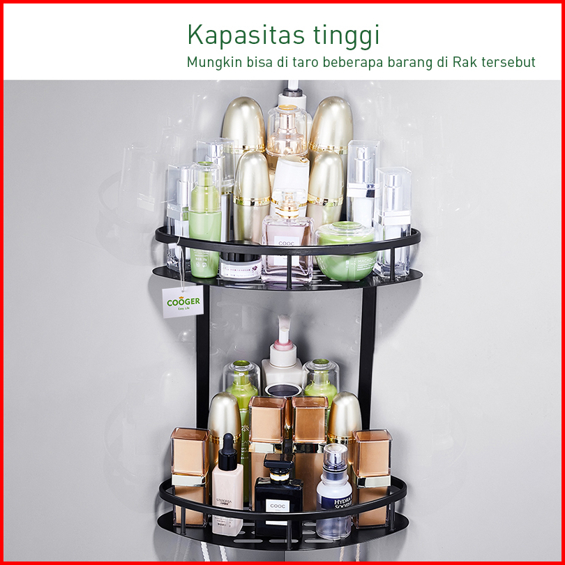 Cooger Rak Kamar Mandi Tempel Dinding Sudut Segitiga Rak Bumbu Dapur Multifungsi Bahan Alumunium 2 Susun Anti Karat