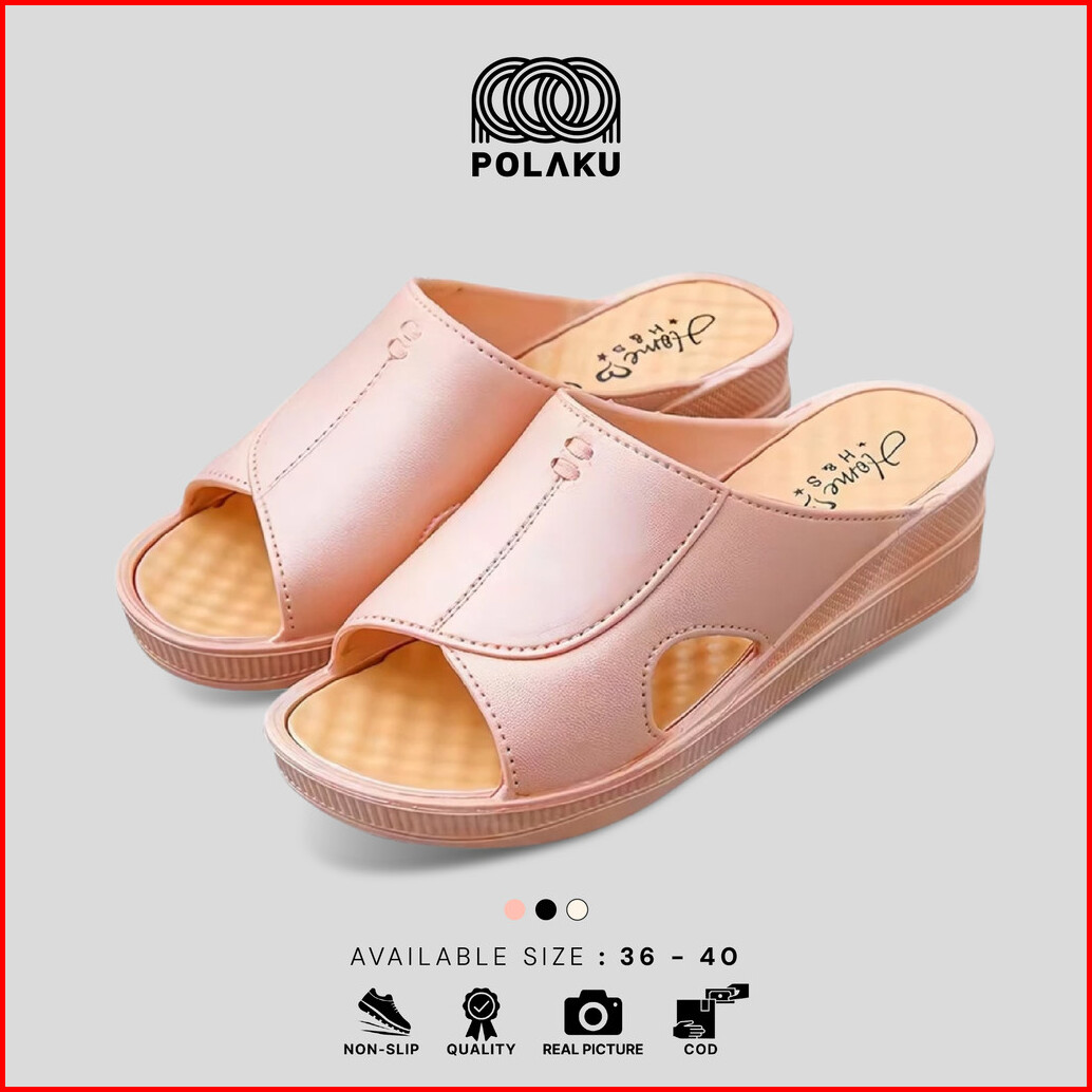 Plk Yooa Sandal Wedges Wanita Casual Sandal Slop Wedges Wanita Tg1744