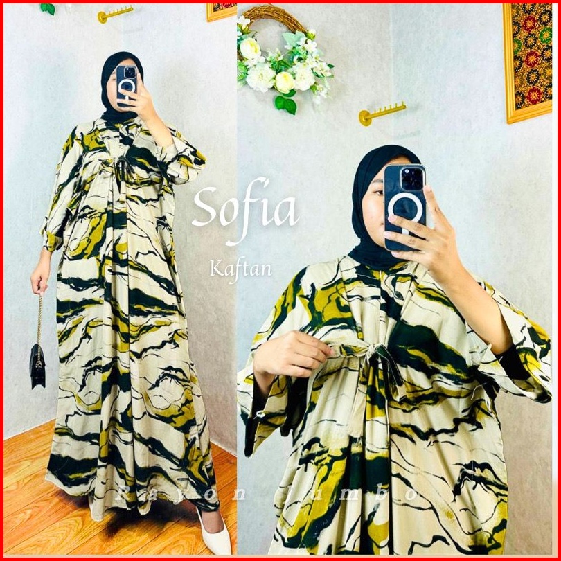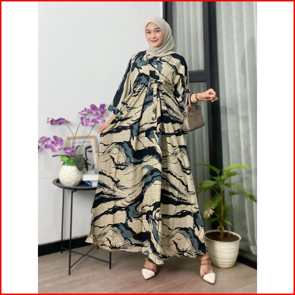 Kaftan Wanita - Sofia Kaftan Rayon Batik Abstrak Simple Elegan Jumbo Maksi Busui Rayon Premium Tali Pita Depan