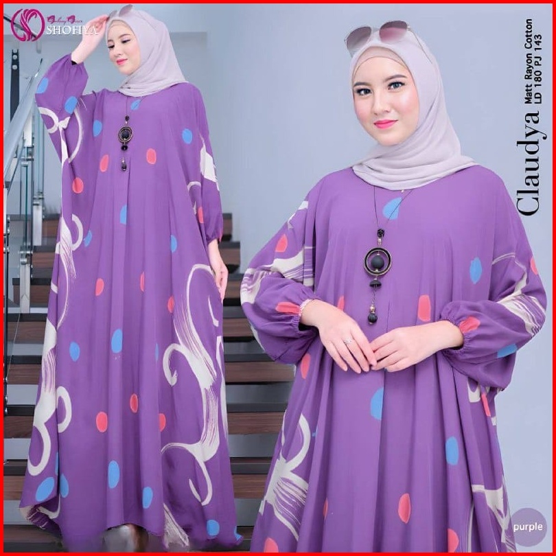 Kaftan Wanita - Claudya Kaftan Kondangan Size Jumbo Batik Kuas Lukis Handmade Busui Resleting Lengan Panjang Rayon Premi