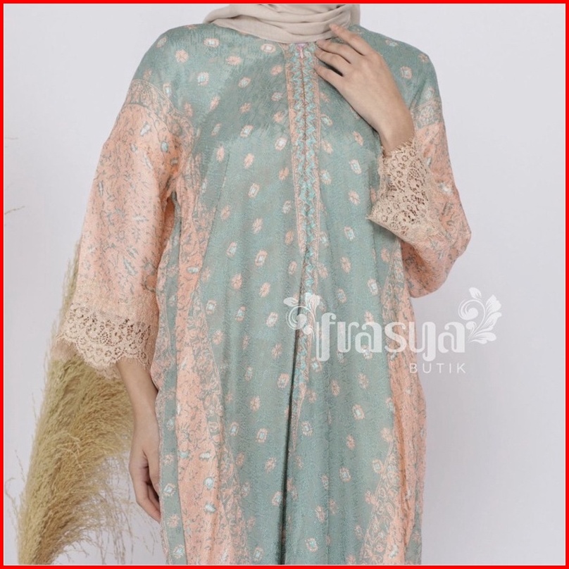 Frasya Butik Promo Kaftan Lebaran Gamis Batik Viscose Pastel Ayuan Frasya Butik