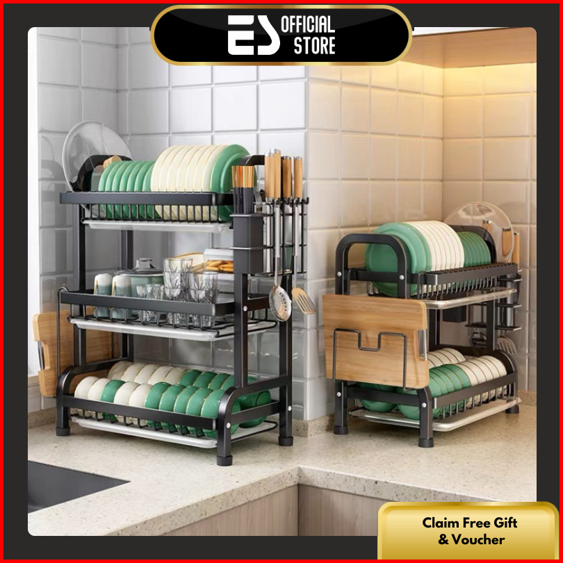 Es Rak Piring Dapur Stainless Steel Penyimpanan Rak Pengering Piring Rak Piring Dan Mangkuk