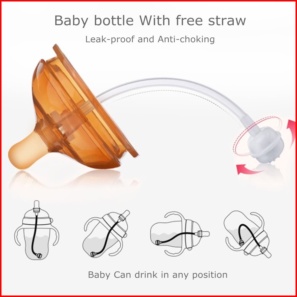 Dot Bayi Botol Silikon Nano Botol Bayi Susu Dengan Sedotan Feeding Bottle Natural Nursing Bottle Dengan Handle