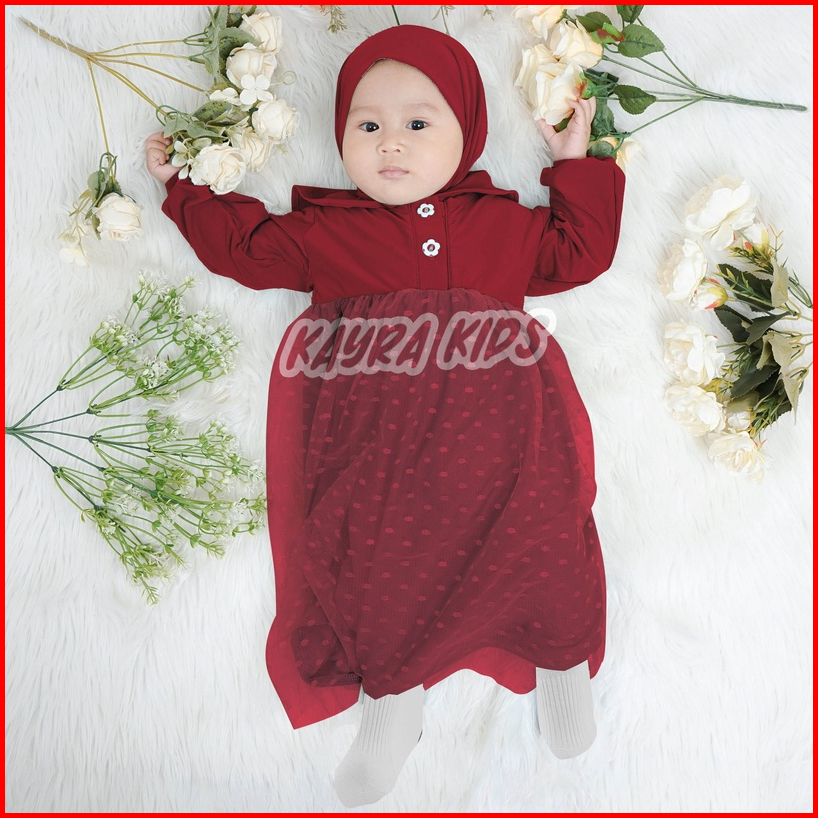 Gamis Bayi Perempuan 0-18 Bulan Baju Gamis Anak Tutu Tileu Dot Pakaian Muslim Anak Balita