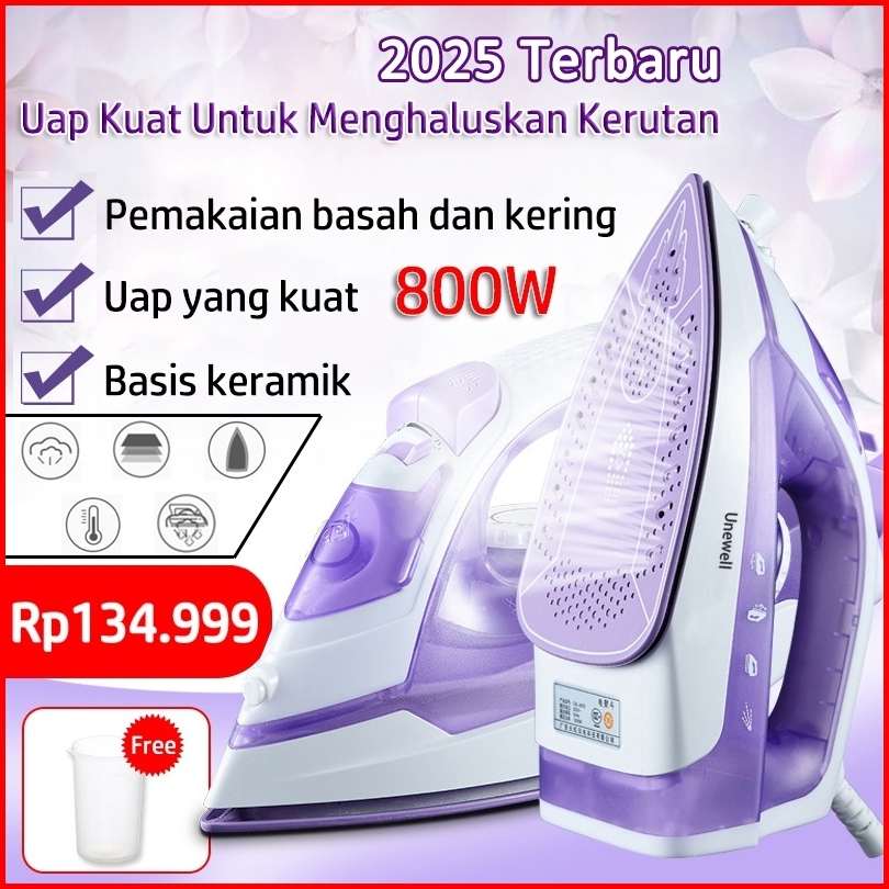 Unewell 2025 Setrika Uap Handheld Portable Multifungsi Low Watt 800w Tapak Non-stick