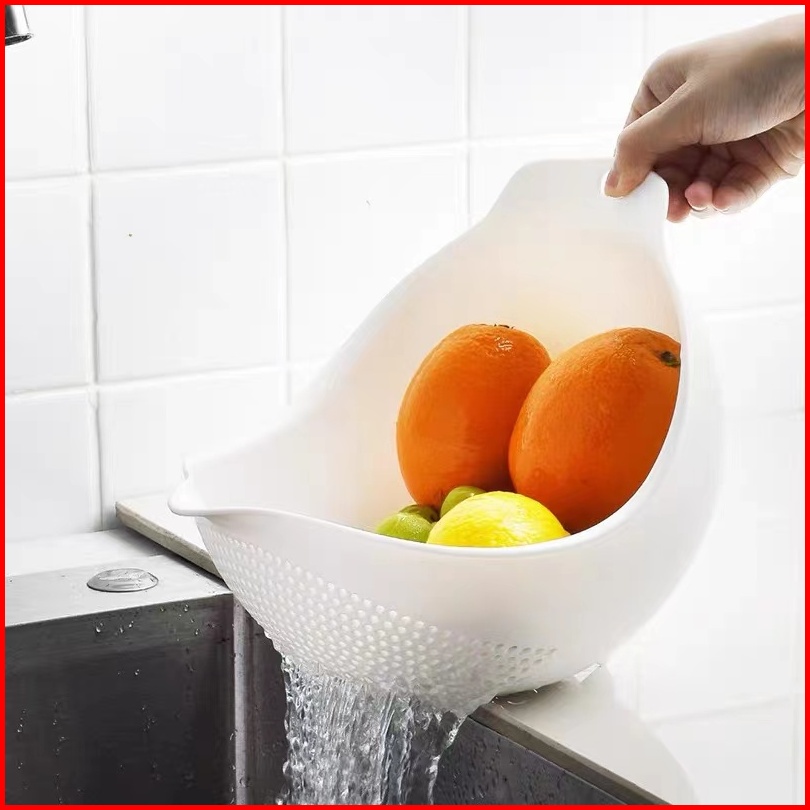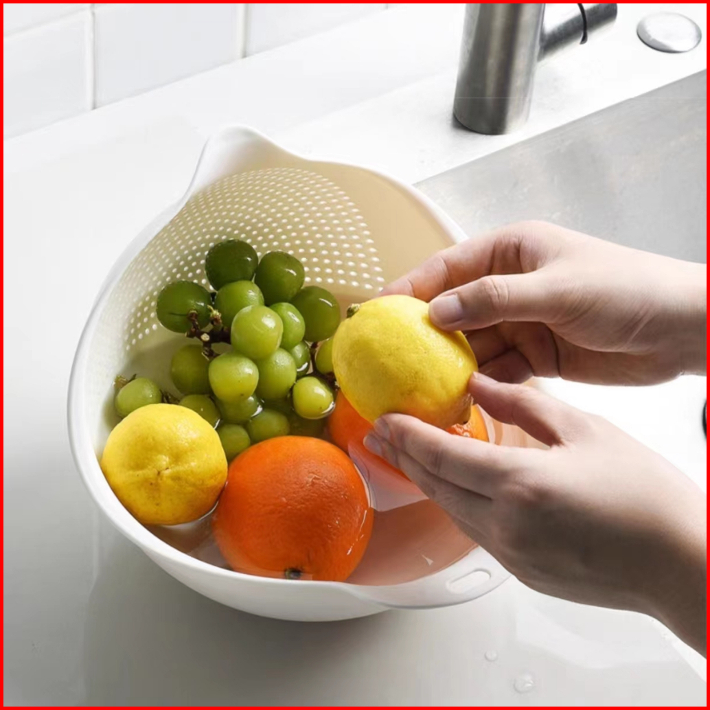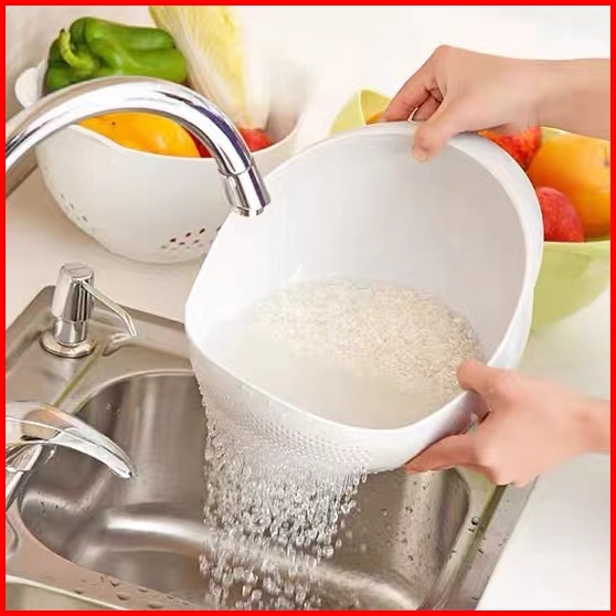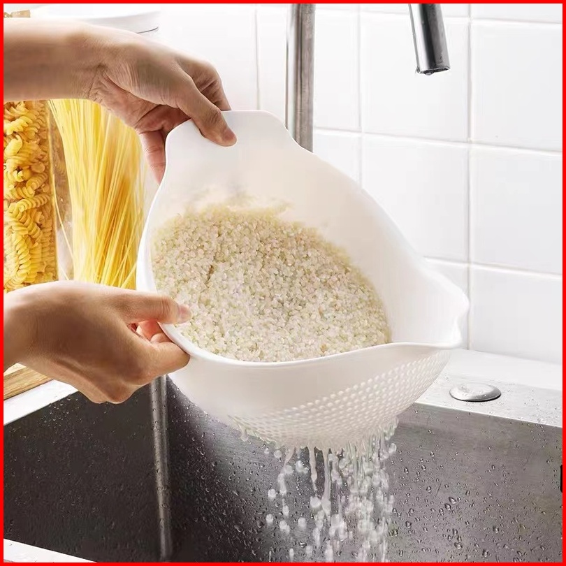 Rice Cleaning Vegetables Basket Baskom Saringan Cuci Beras Sayuran Buah Putih H400