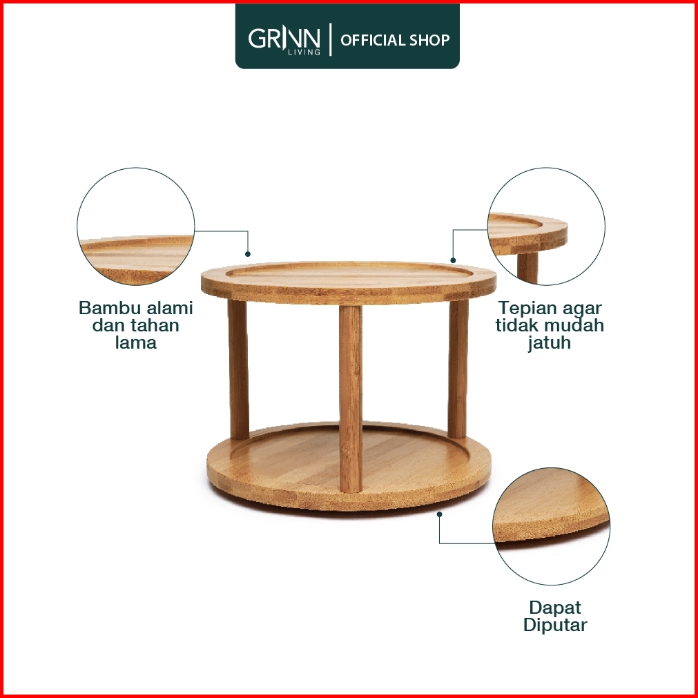 Grinn Living Hazel Rak Serbaguna Tempat Bumbu Dapur Putar Susun 2tingkat Dari Bambu Kayu Aesthetic