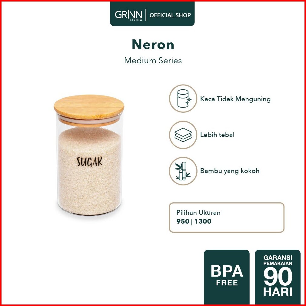 Grinn Living Neron Jar Medium Toples Kaca Tutup Kayu Bambu Tempat Kopi Gula Snack Kue Aesthetic