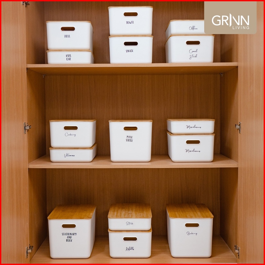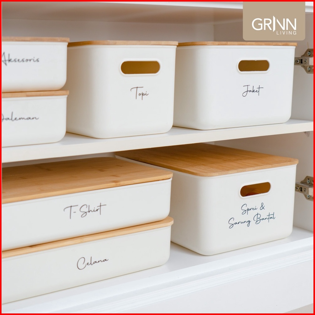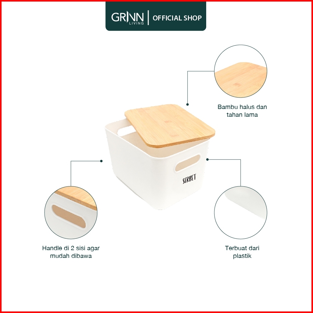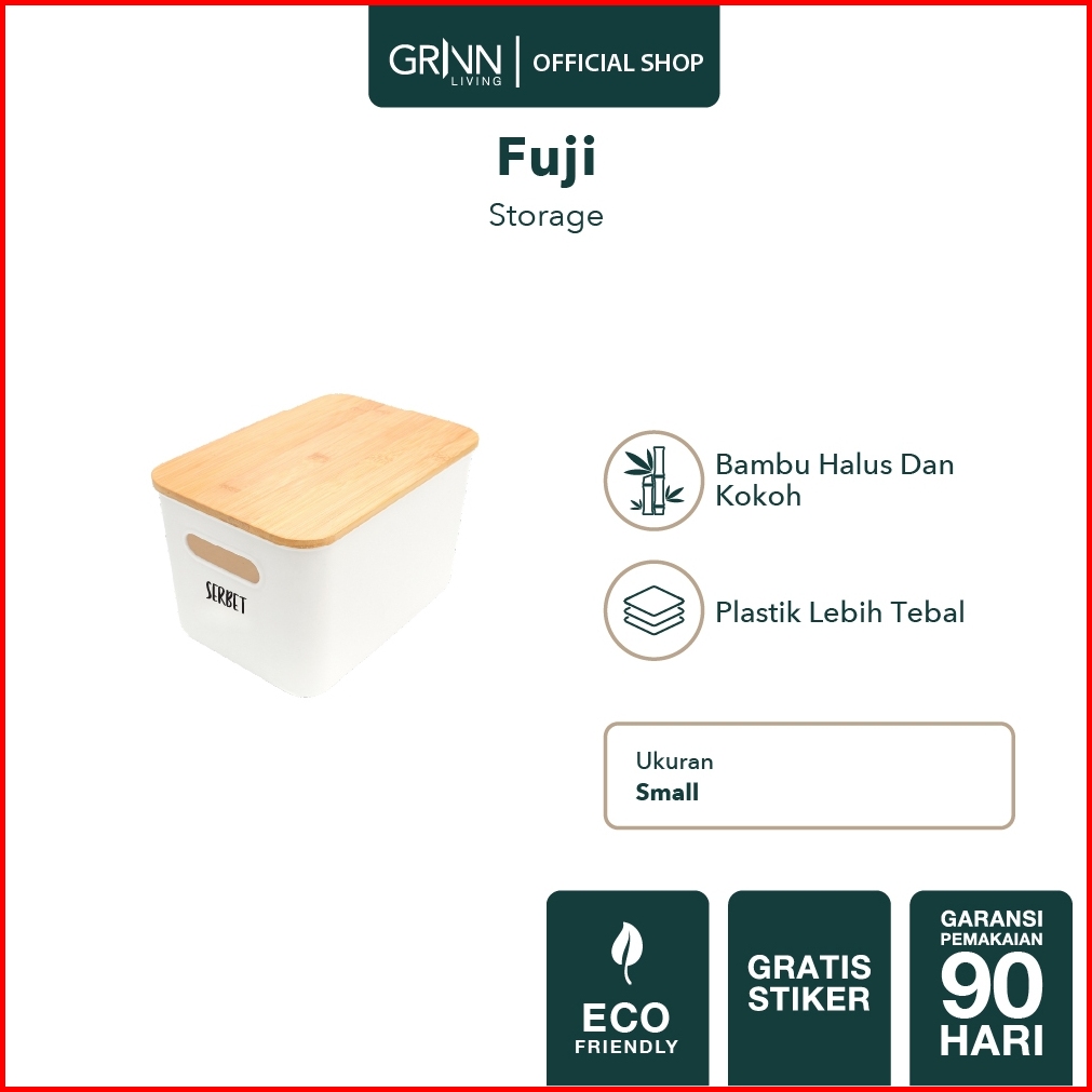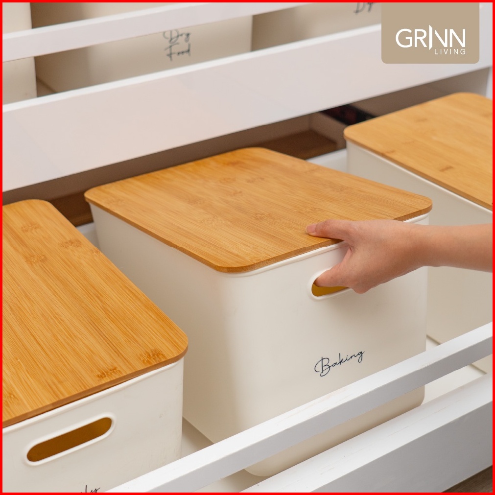 Grinn Living Fuji Storage Box Tempat Kotak Penyimpanan Serbaguna Small Untuk Makanan Tutup Bambu Kayu Aesthetic