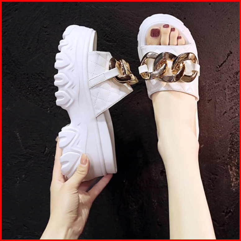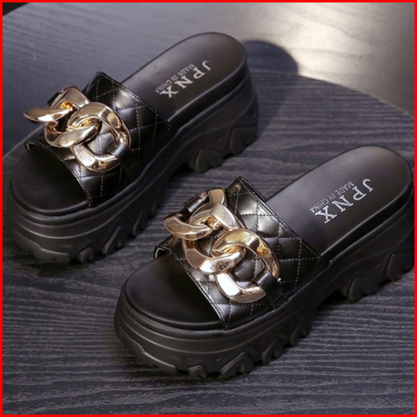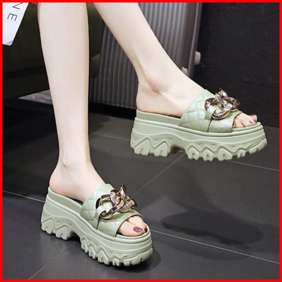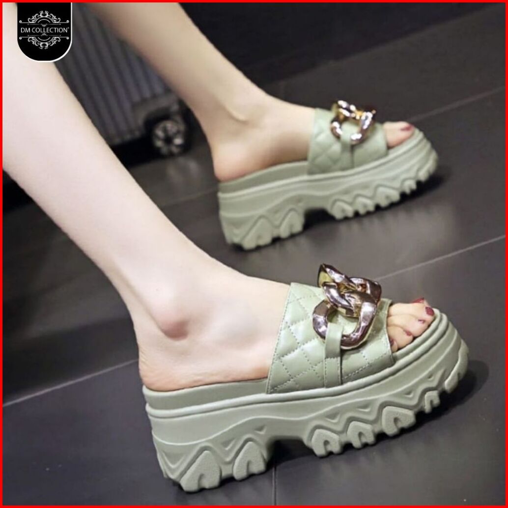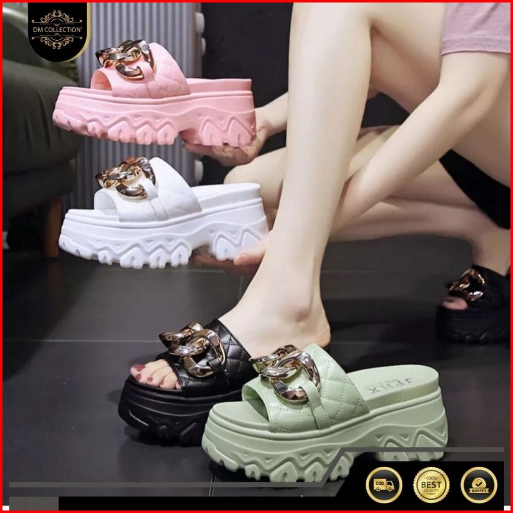 Dm-shop Sandal Wanita Hak Tinggi Sol Gerigi Slip On Variasik Kokop Rantai Elegan Bm 511