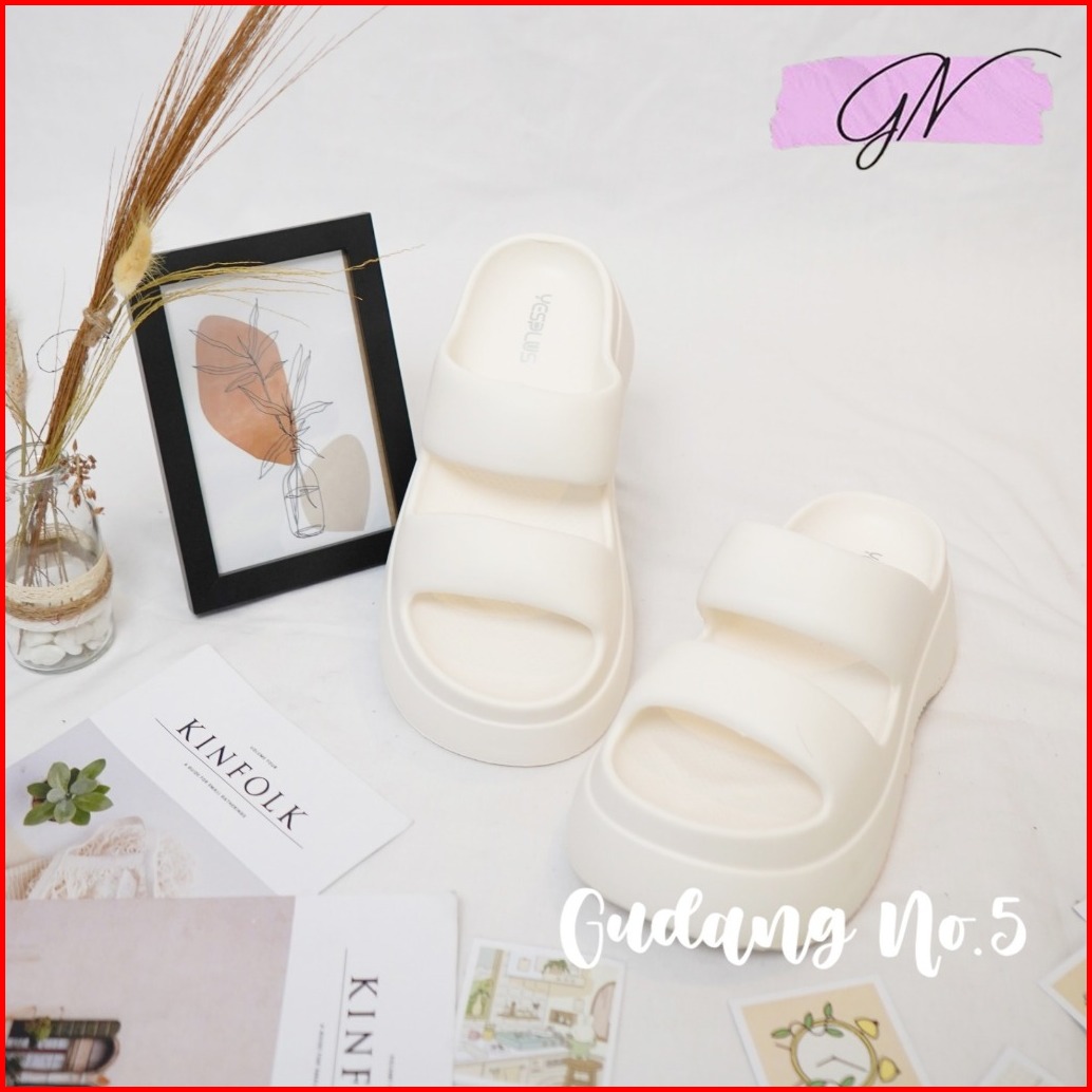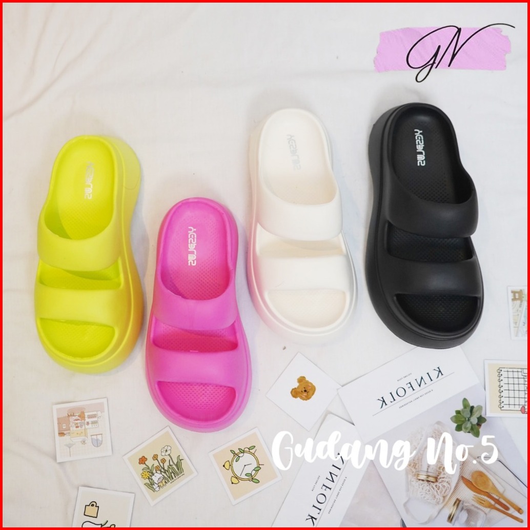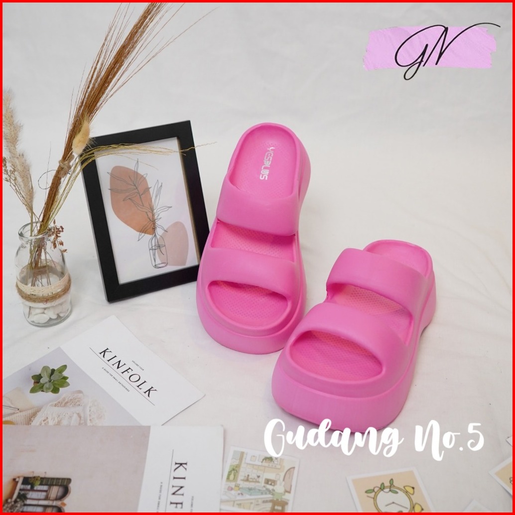 Gn-607 1 Sandal Slippers Eva Rubber Wanita Sandal Wedges Jelly Slop Dua Terbaru Korean Style Import