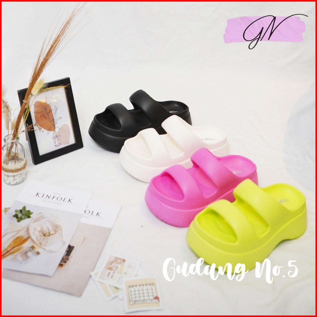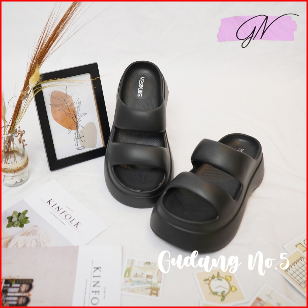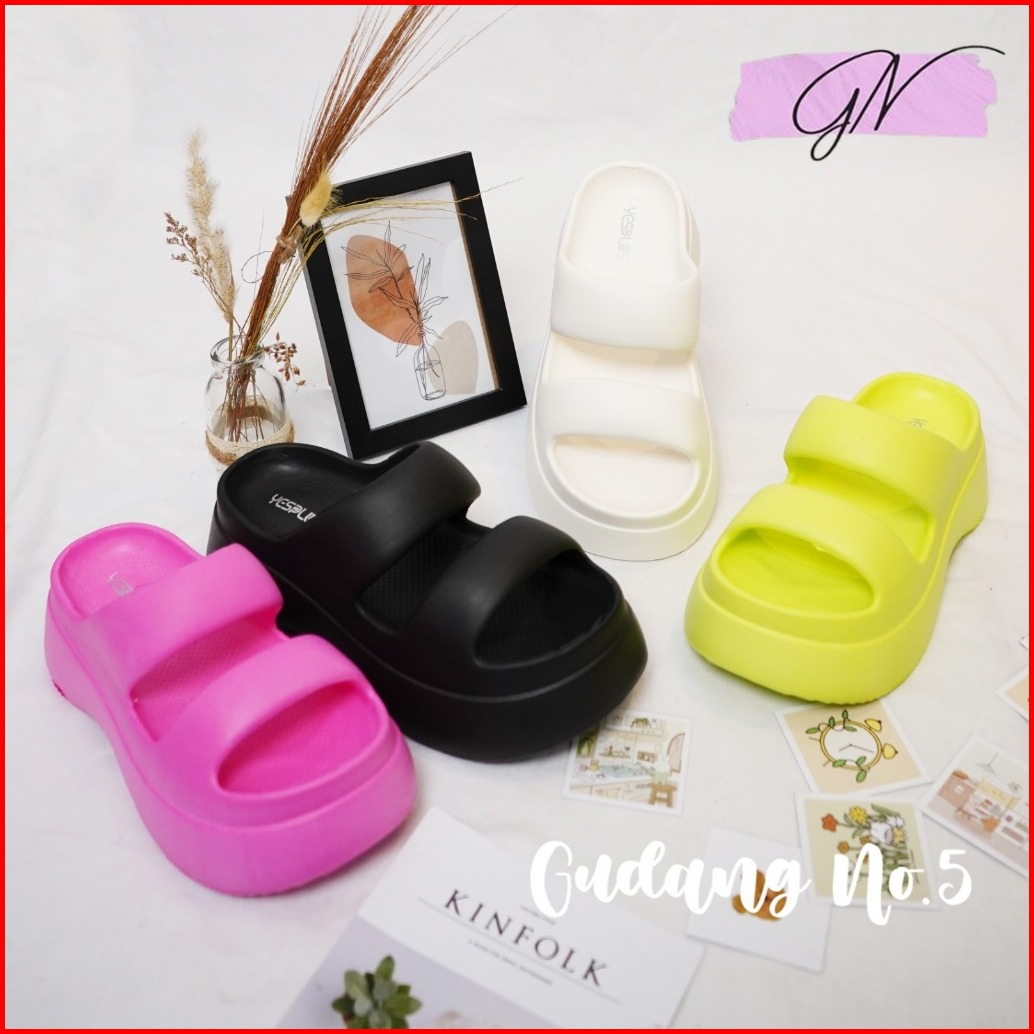 Gn-607 1 Sandal Slippers Eva Rubber Wanita Sandal Wedges Jelly Slop Dua Terbaru Korean Style Import