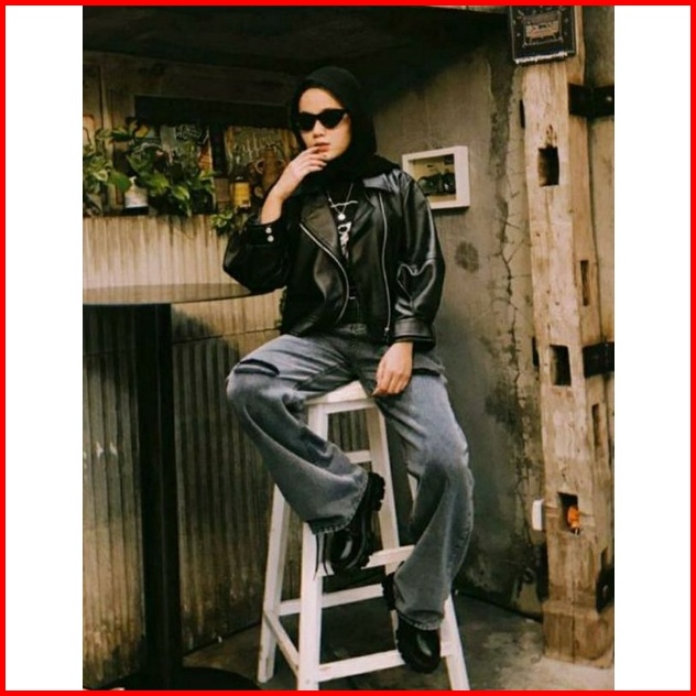 Jaket Kulit Wanita Crop Semi Kulit Sintetis