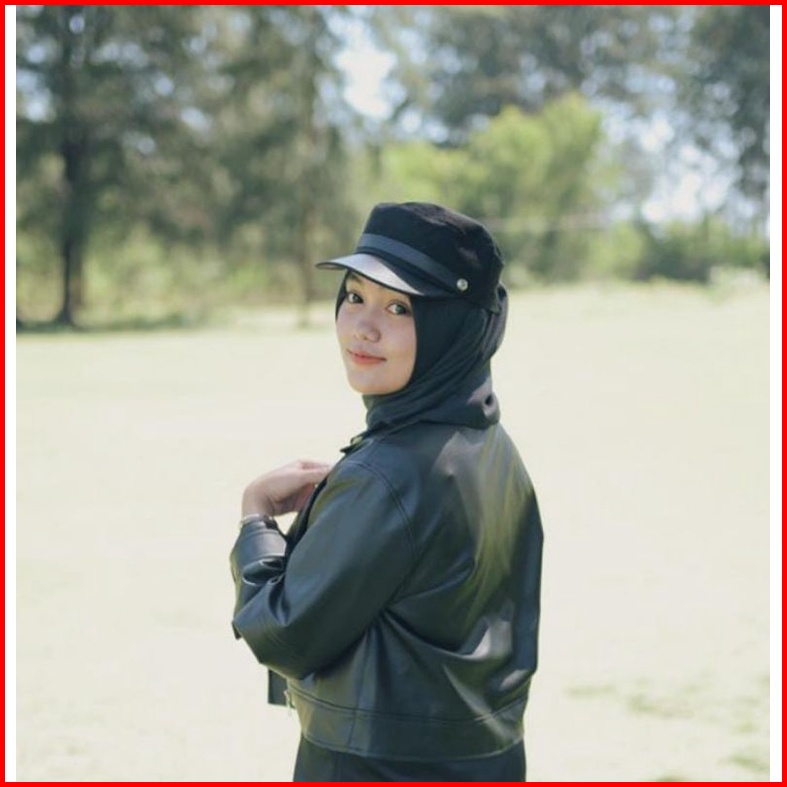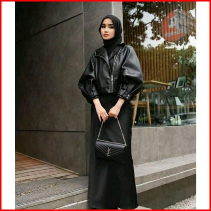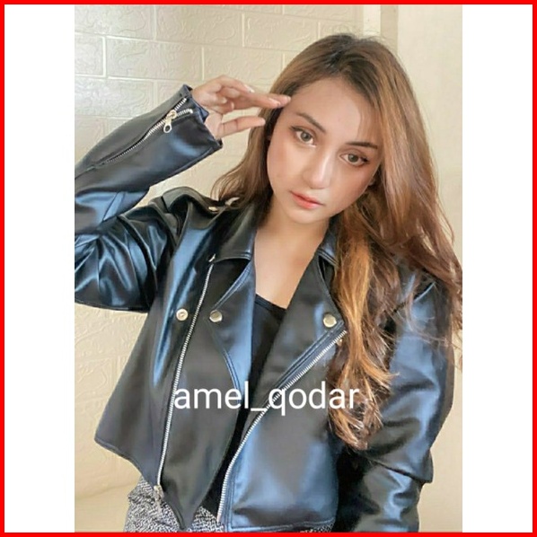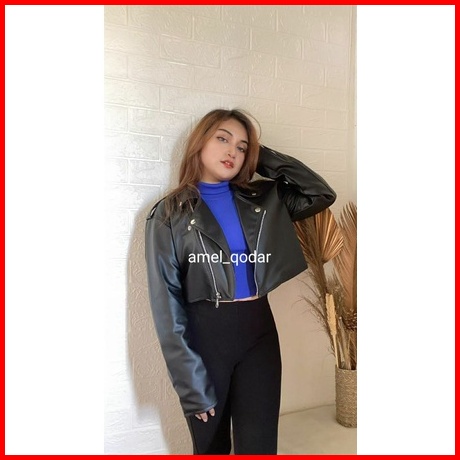 Jaket Semi Kulit Wanita Crop Top Black Slimfit Leather Premium