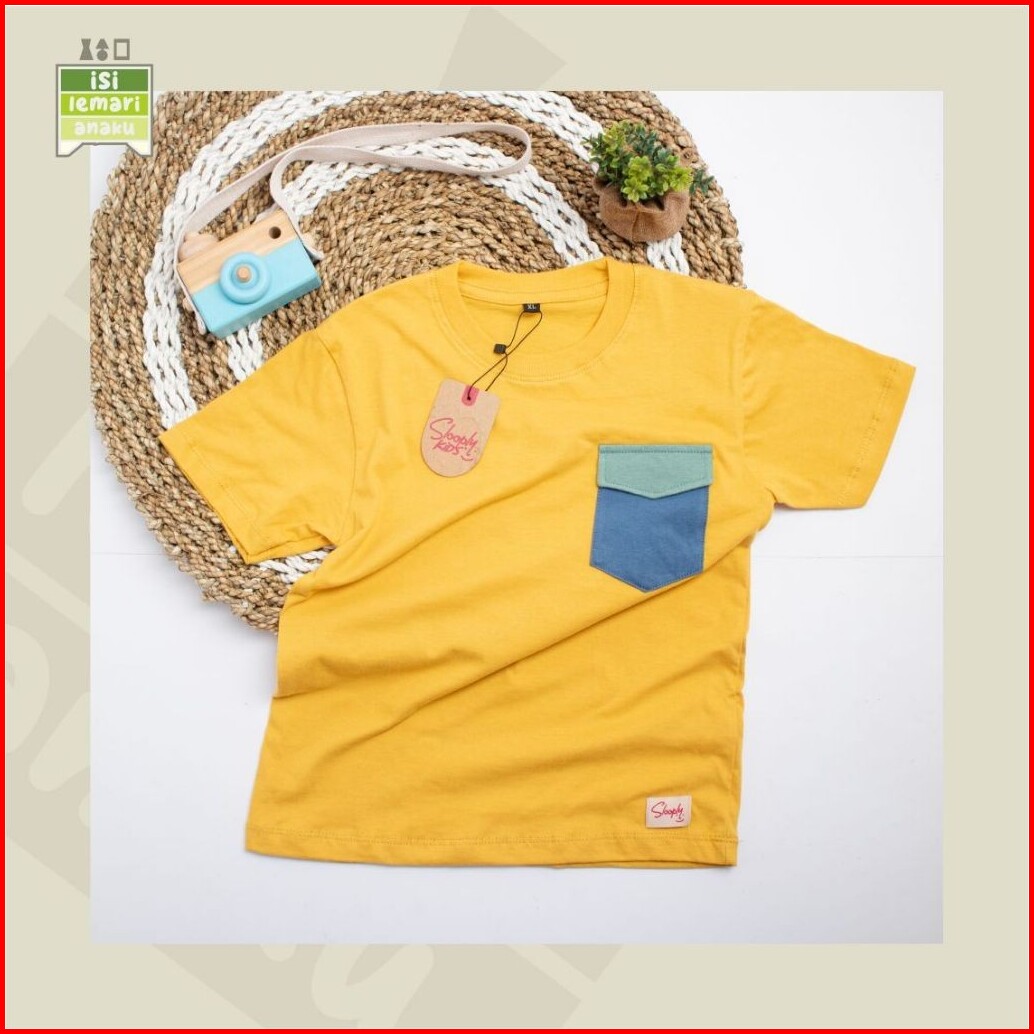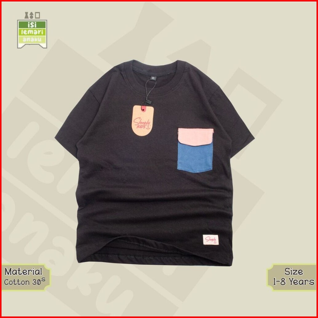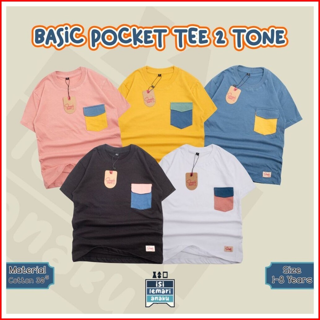 Kaos Polos Anak Saku Laki Laki Perempuan 2 Tone Lengan Pendek Bahan Katun 30s