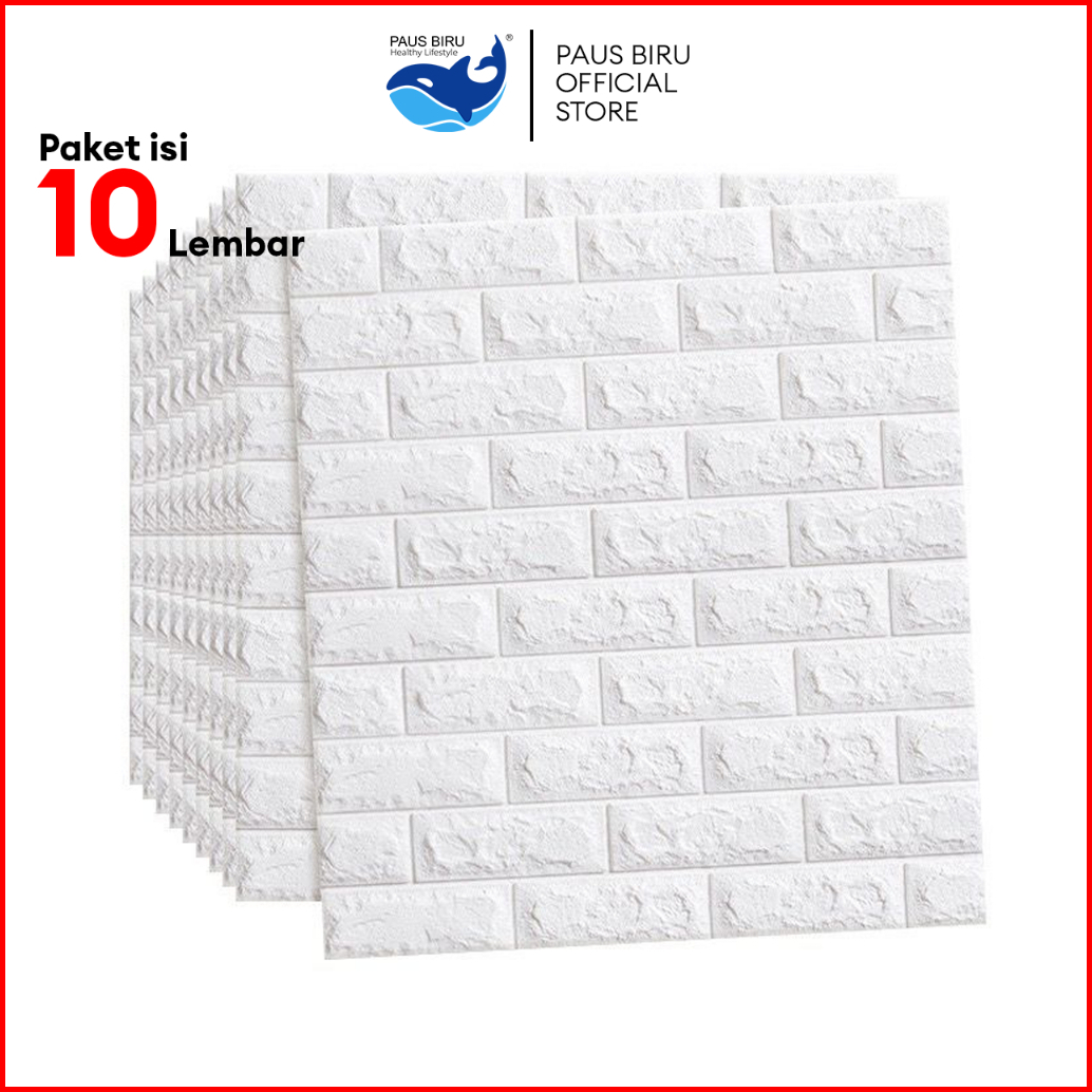 Paus Biru - Paket 10 Lembar Wallpaper Dinding Foam Timbul 3d Bata Classic Brick 70x77cm