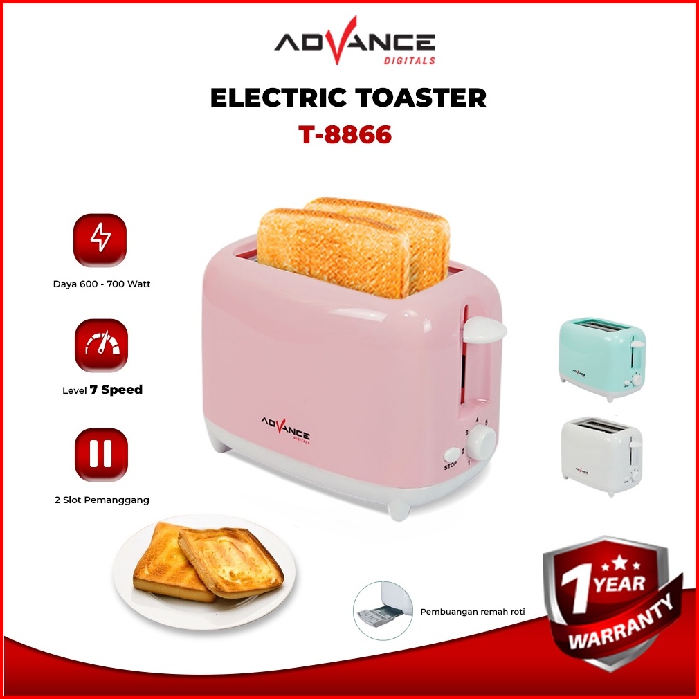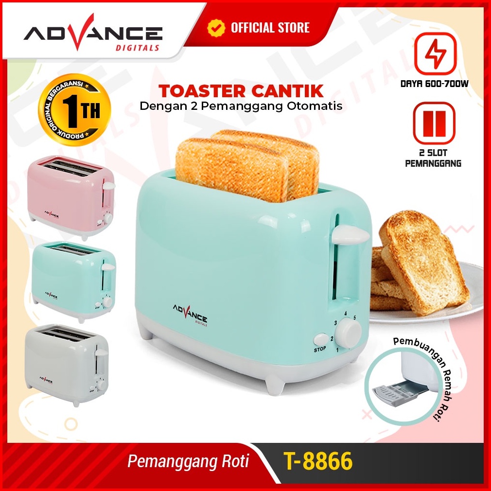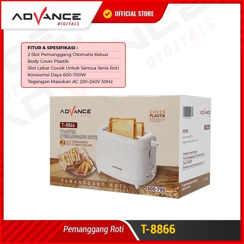 Advance Pemanggang Roti Listrik Toaster Sandwich Otomatis Pop-up T8866 Garansi Resmi Advance 1 Tahun