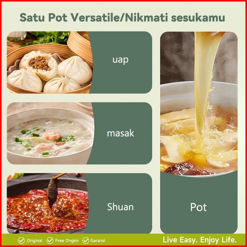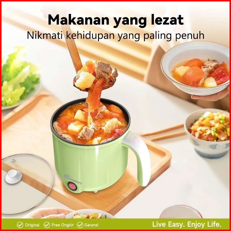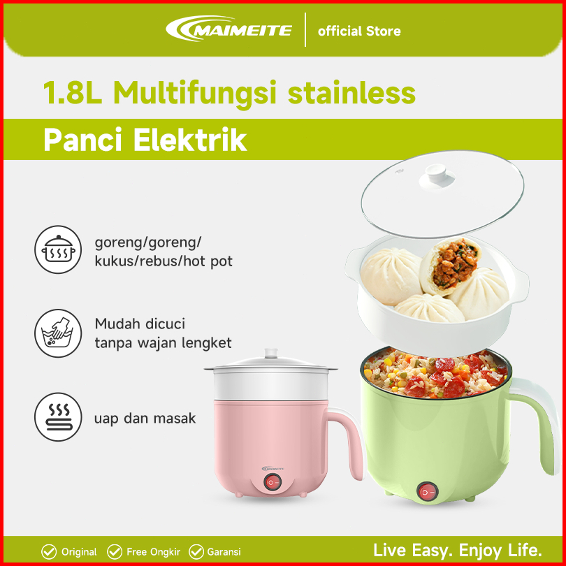Maimeite Panci Listrik Serbaguna 1.8l Multifungsi Stainless Panci Elektrik Non-stick