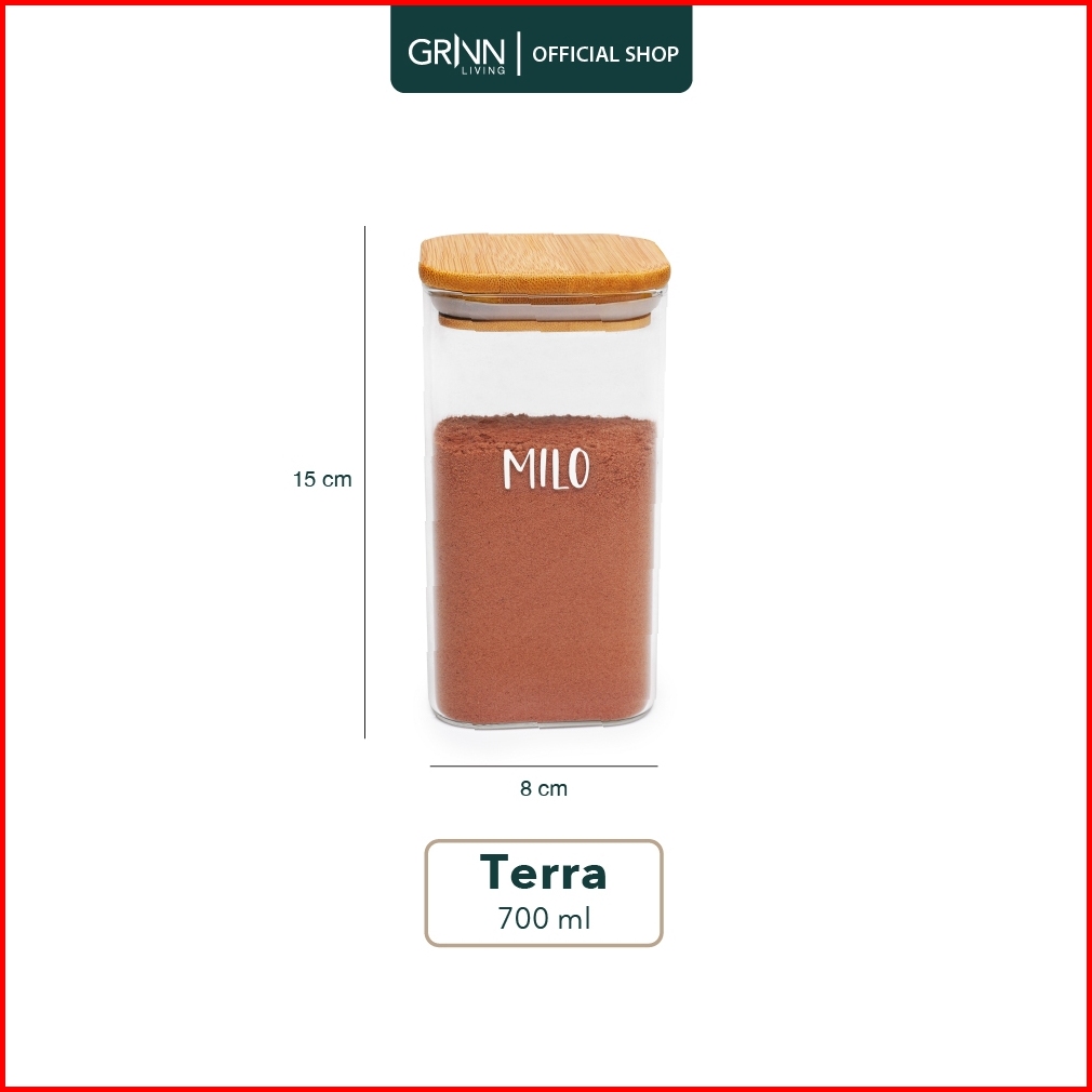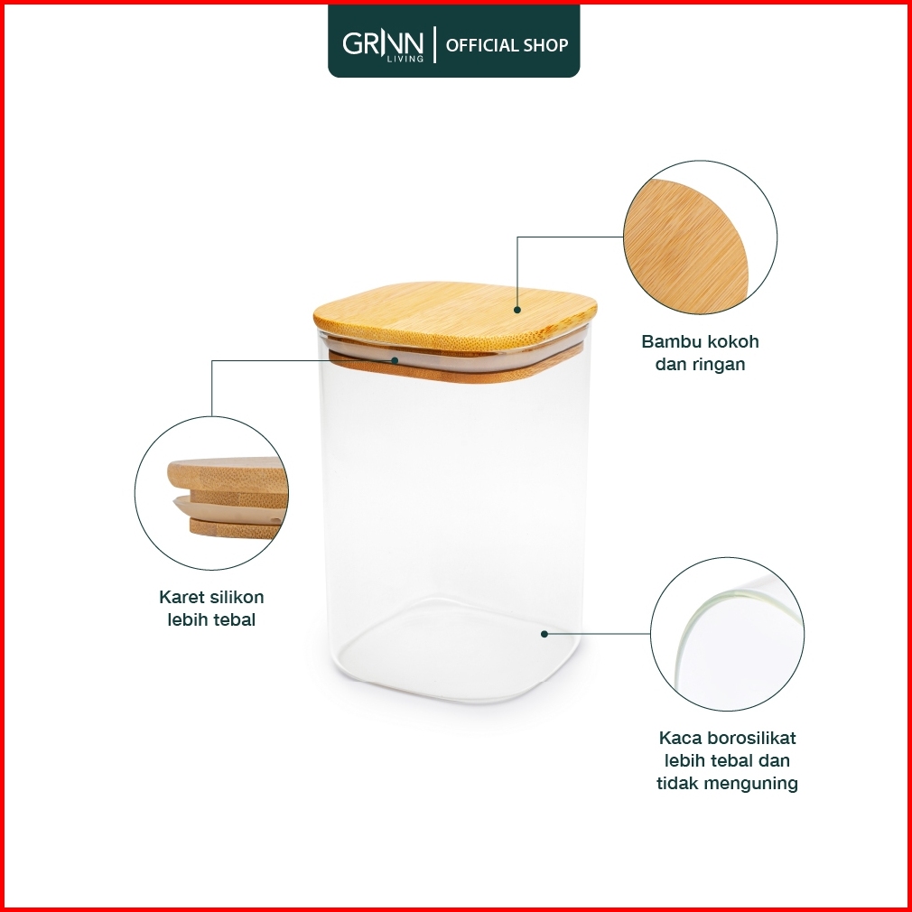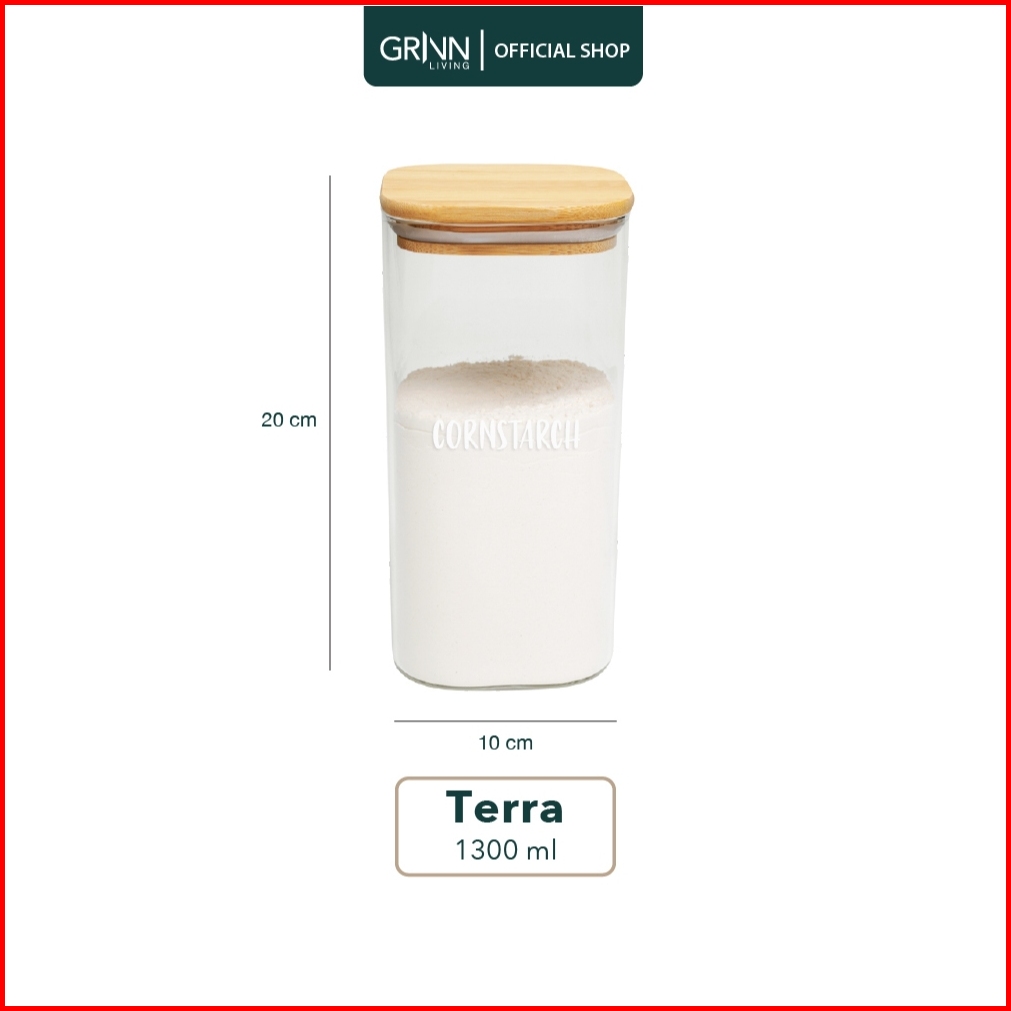 Grinn Living Terra Jar Toples Kaca Kotak Tutup Kayu Bambu Tempat Kopi Teh Snack Medium Aesthetic