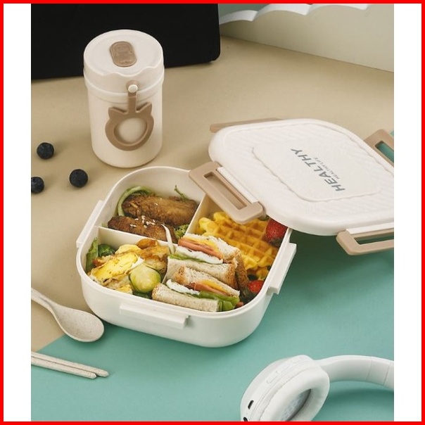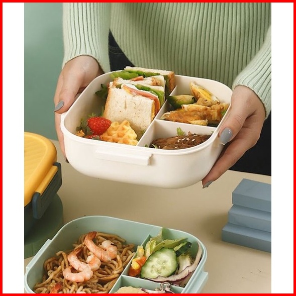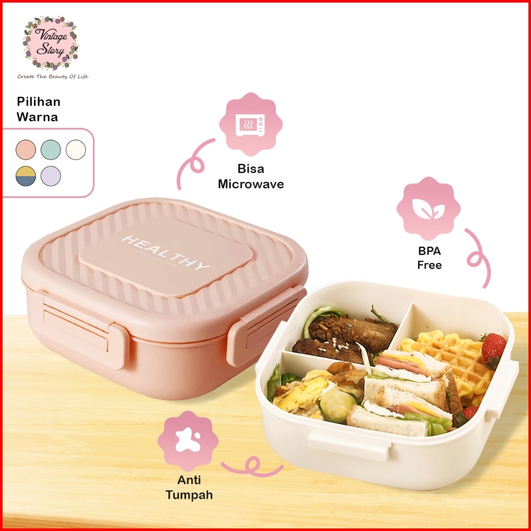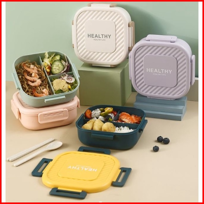 Bekal Makan Set Lunch Box Bento Anak Sekolah Kantor Dewasa Estetik 3 Sekat Anti Tumpah Gratis Sumpit Sendok