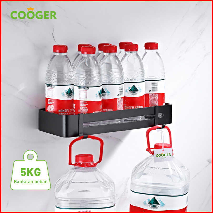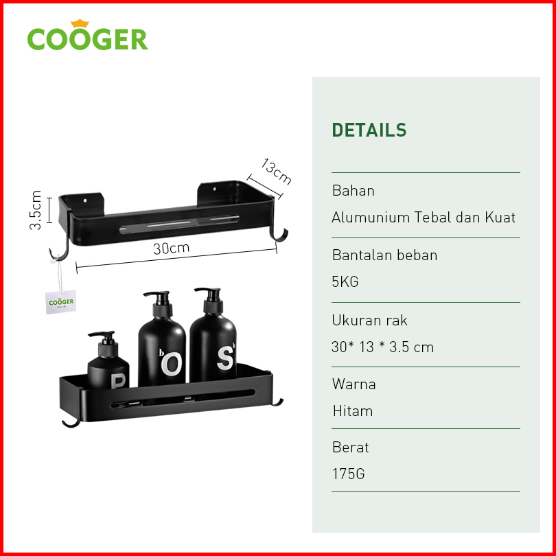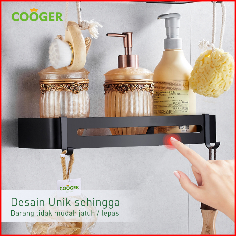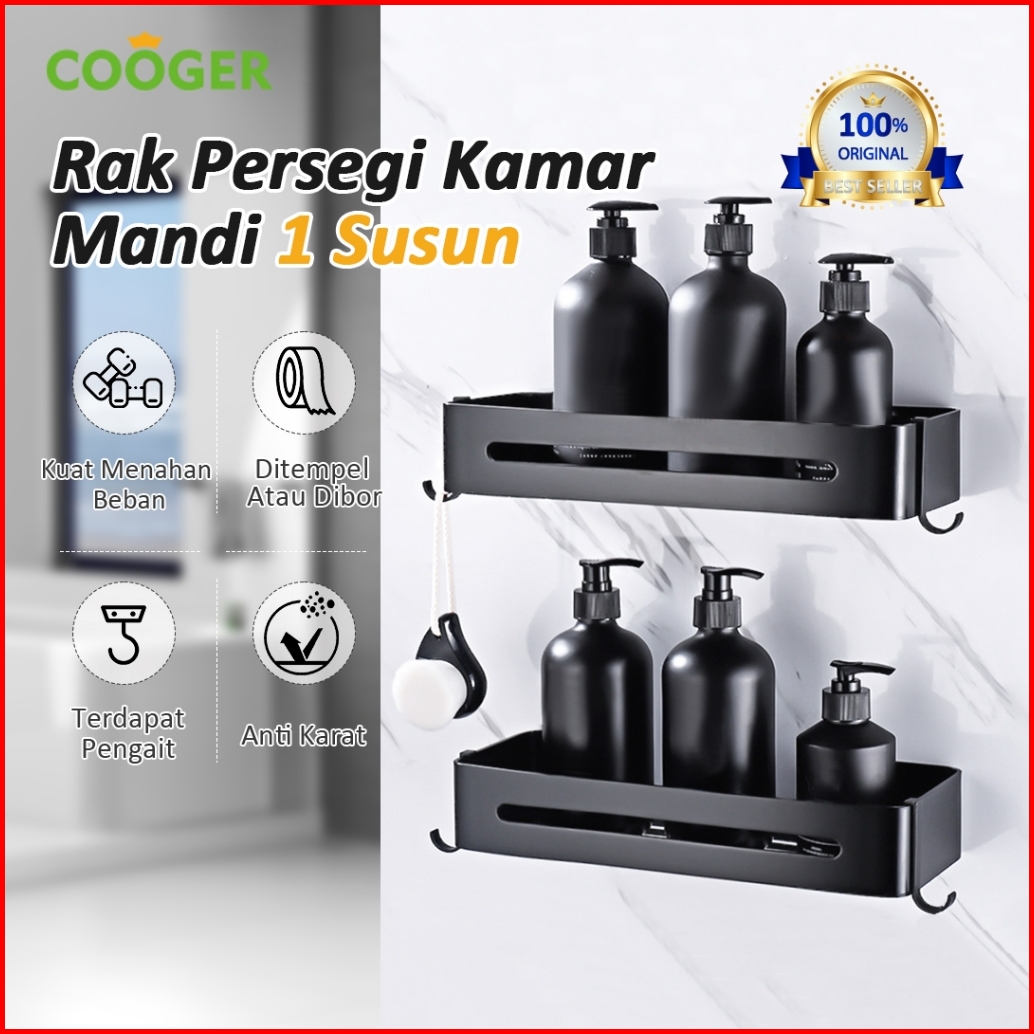 Cooger Rak Kamar Mandi Persegi Alumunium 1 Susun Tempel Dinding Serbaguna Tempat Penyimpanan Sabun Odol Bumbu Dapur