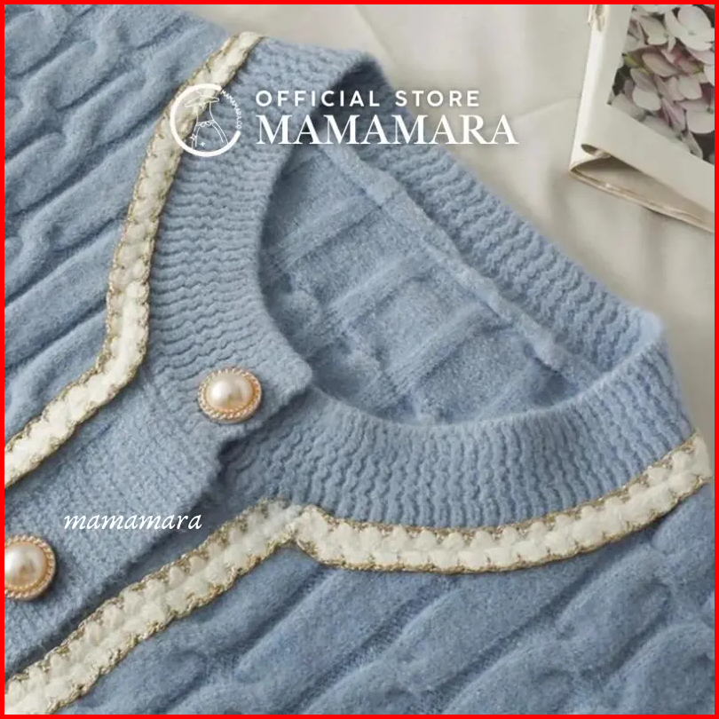 Mamamara - Cardigan Wol Rajut Korean Style Ruffle Rompi Mutiara