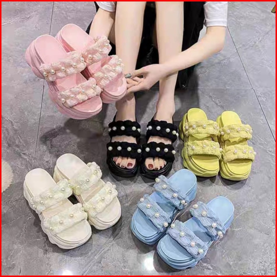Dm-shopp Sandal Wedges Wanita Slip Onkombinasi Kain Kerut Variasi Mutiara Wedges Faltfrom Bm 522