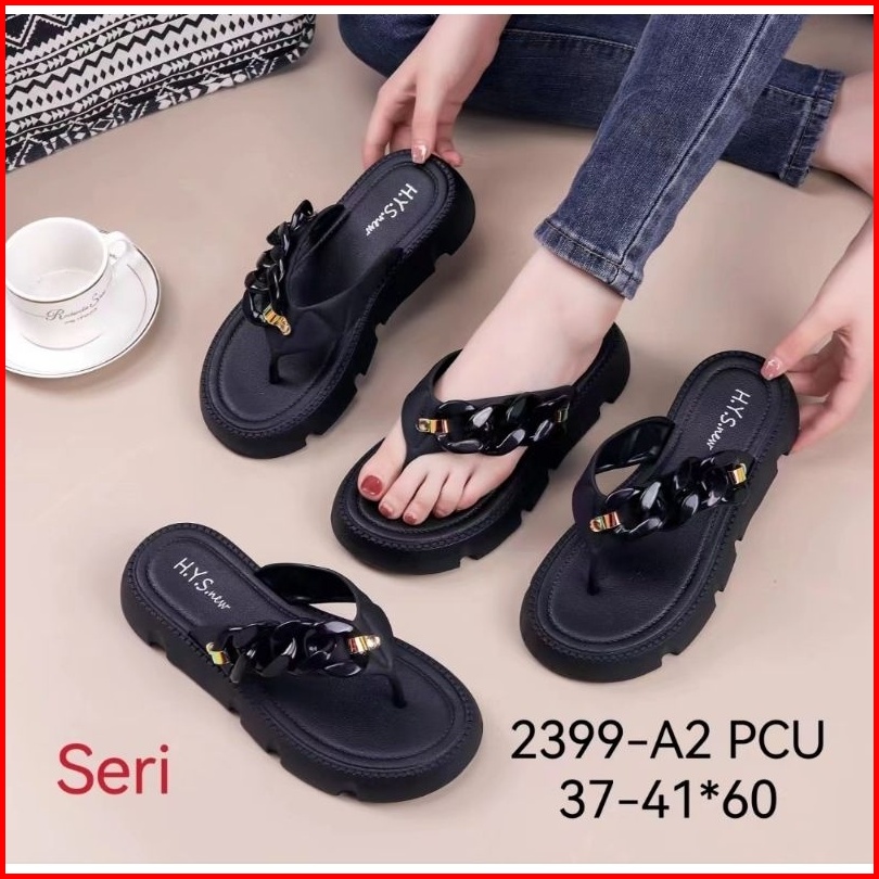Sandal Jepit Wedges Tali Rantai Jelly Platform Tebal Wanita Import 2399 Pcu