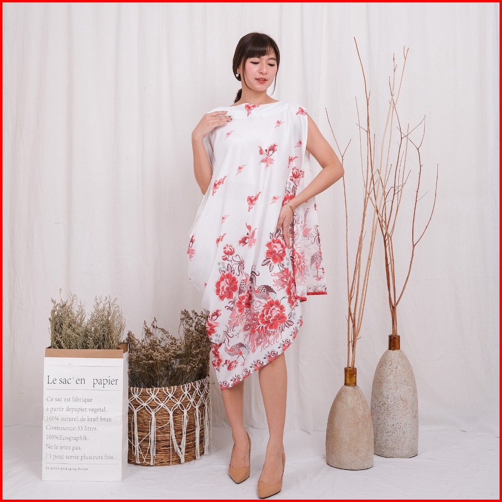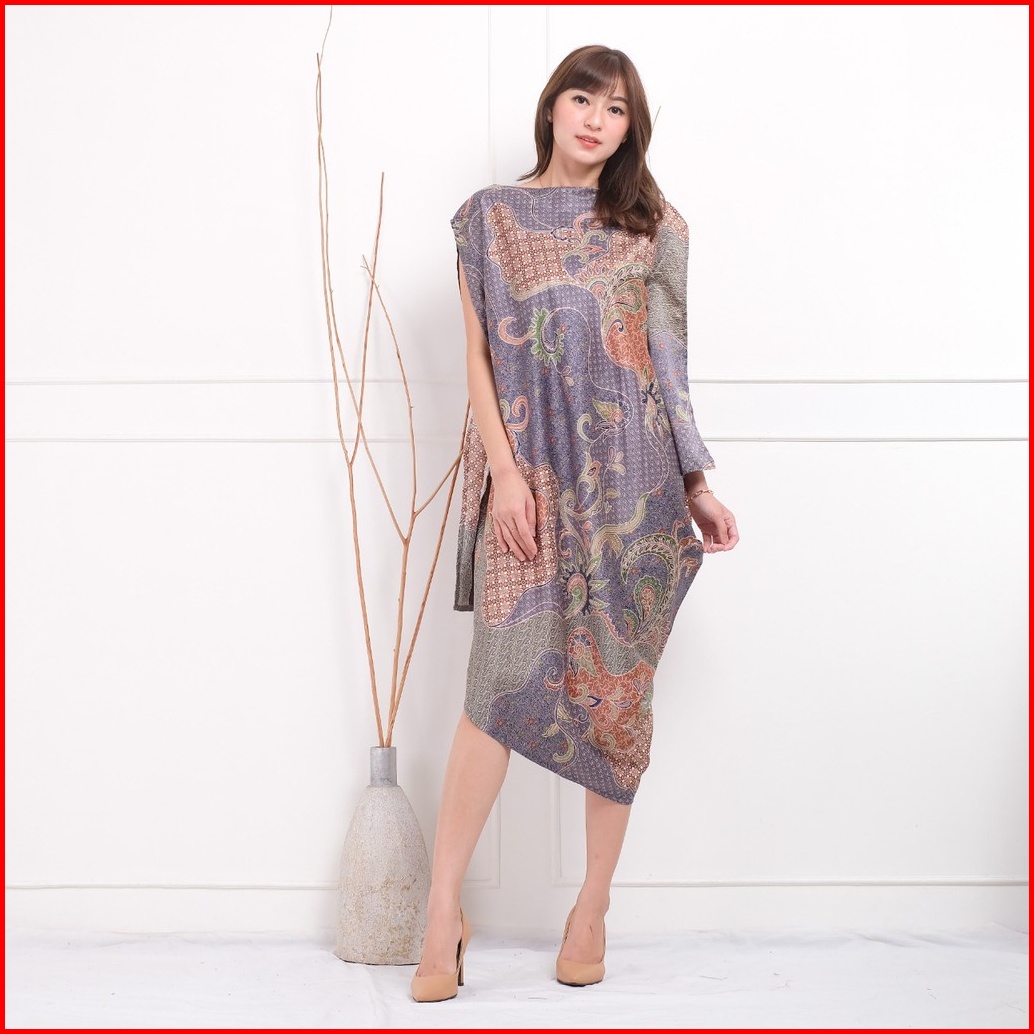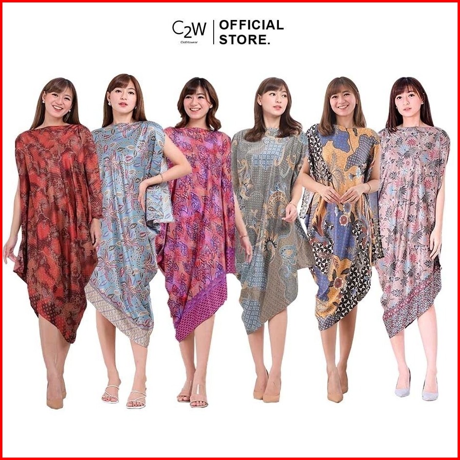 C2w Clothtowear Kaftan Asymetric Slv Dress Batik Wanita All Size Satin Women S Clothes