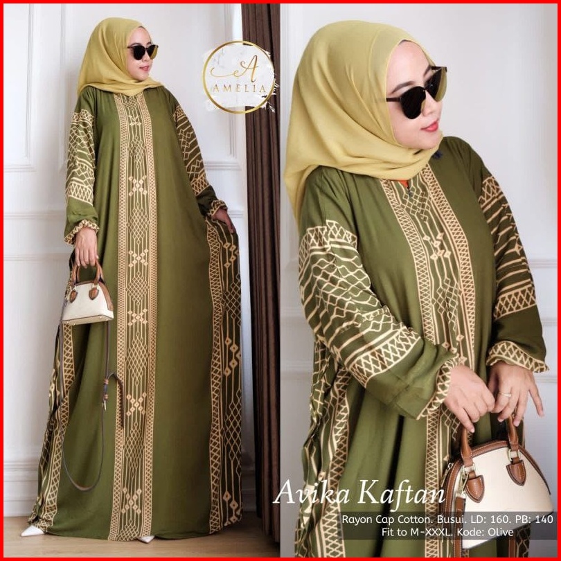 Kaftan Wanita - Avika Kaftan Batik Size Jumbo Xxxxl Motif Garis Hexagonal Lengan Panjang Busui Gamis Rayon Kaftan Kondan