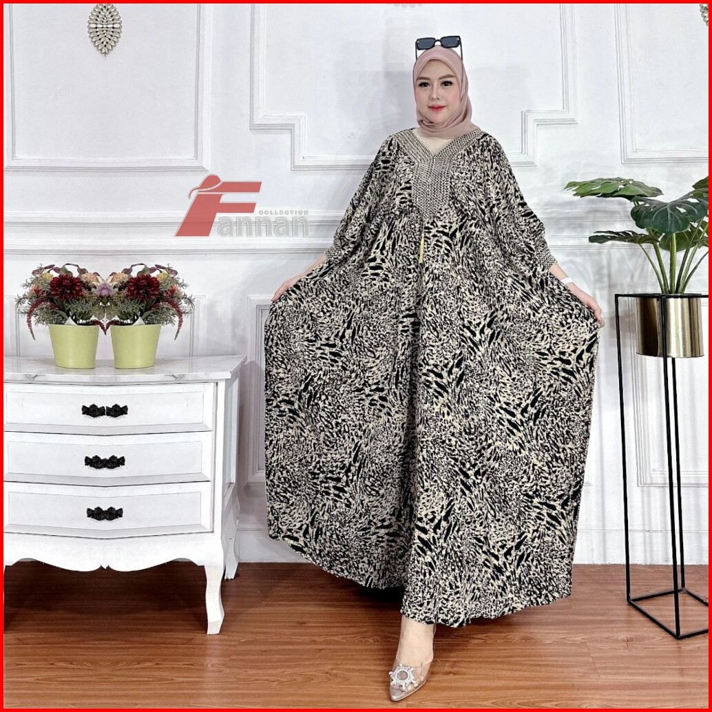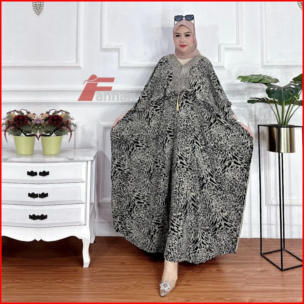 Kaftan Kondangan Motif Leopard Batik Wanita Modern Jumbo