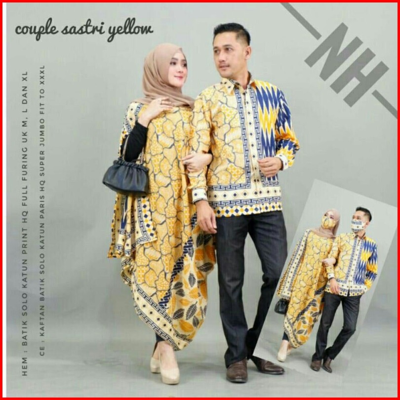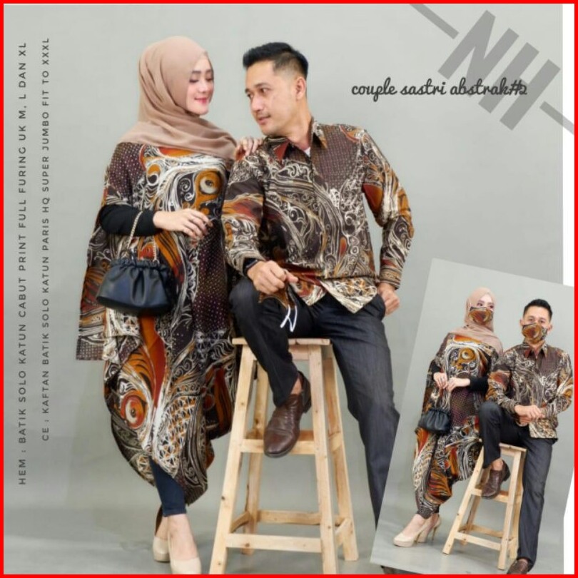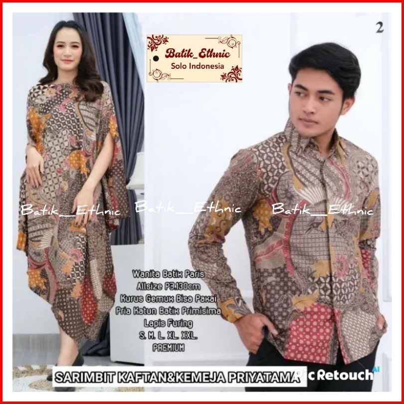 Baju Kondangan Batik Couple Kaftan Catton Paris Kemeja Panjang Lapis Furing