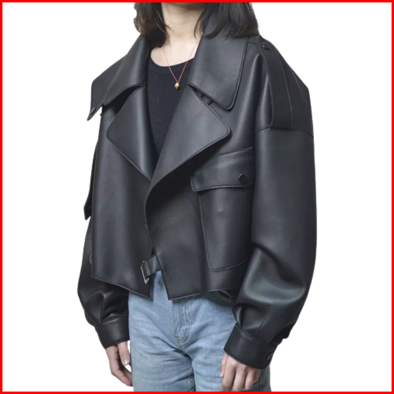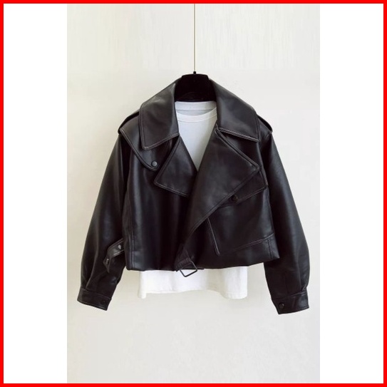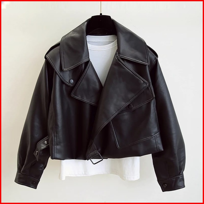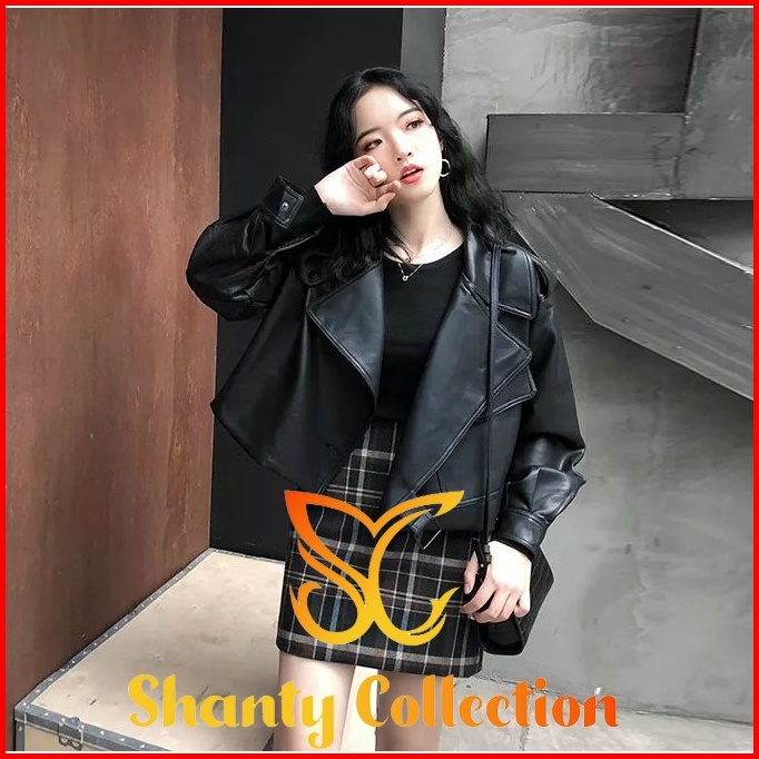 Jaket Kulit Wanita Crop Oversize Mantel Semi Kulit Luxury Import Dewasa Hitam S.m.l.xl.xxl Shanty Collection