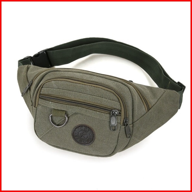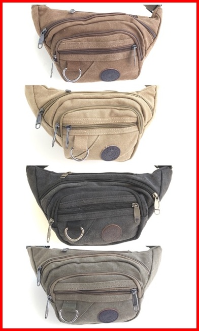 Tas Pinggang Pria Import Bahan Kanvas Tebal Waist Bag Selempang Multifungsi Sling Bag