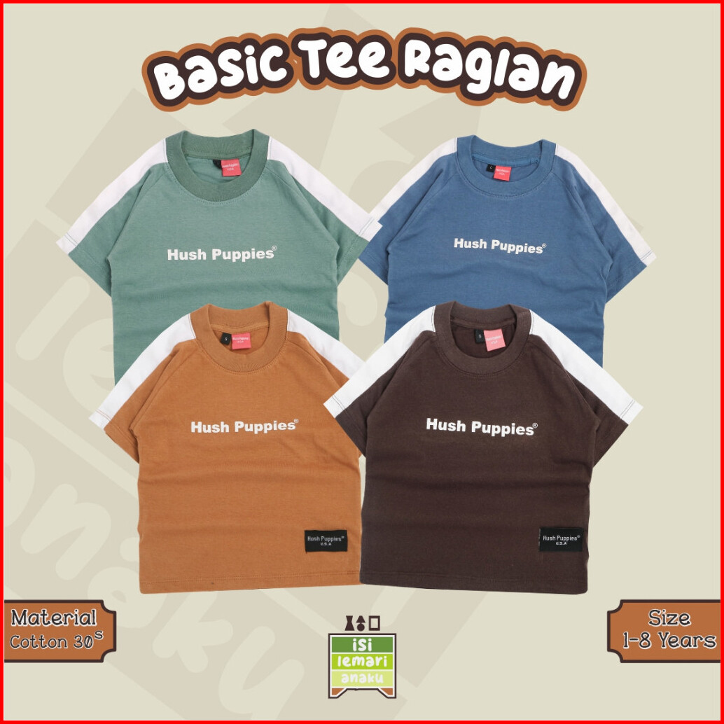 Kaos Distro Anak Reglan Hush Puppies Lengan Pendek Laki Laki Dan Perempuan 1-8 Tahun