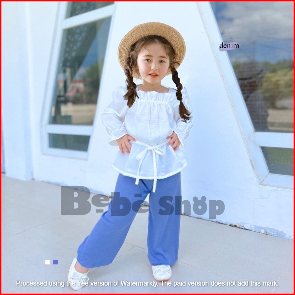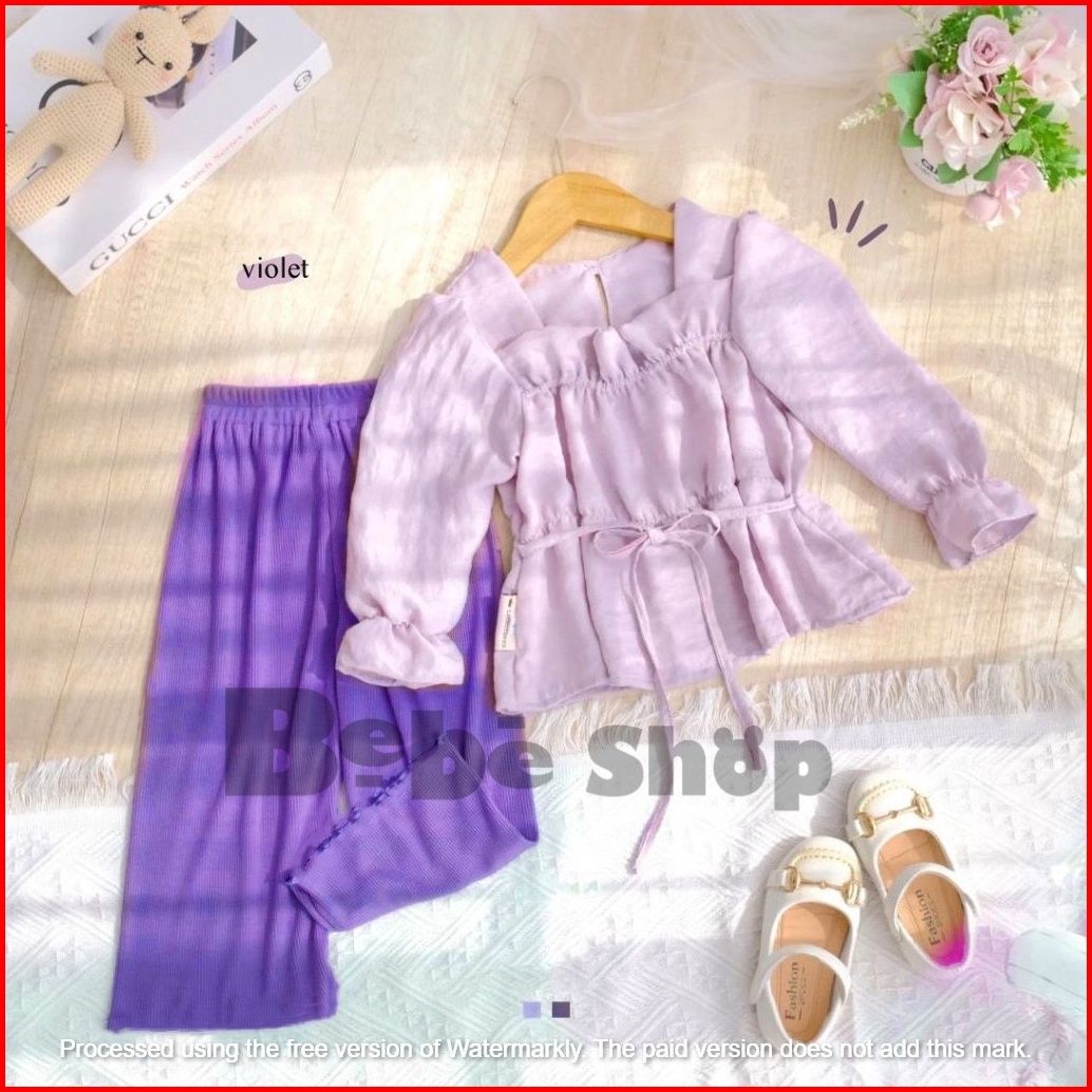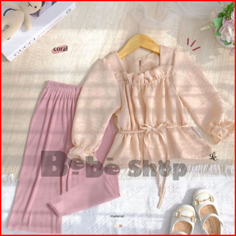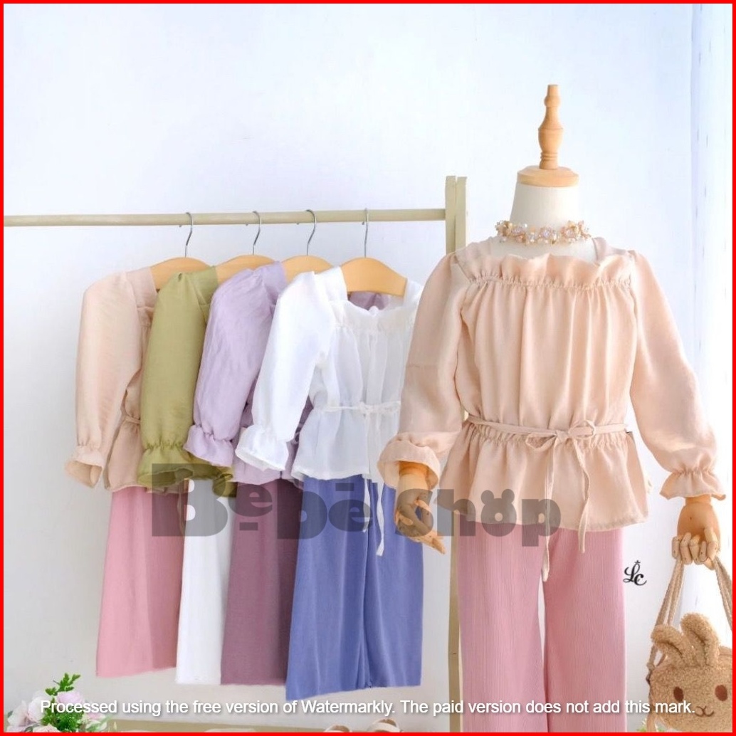 Setelan Anak Perempuan Bahan Cringkle Model Top Blouse Serut Pinggang Lengan Panjang Usia 1 Sampai 10 Tahun Banyak Pilih