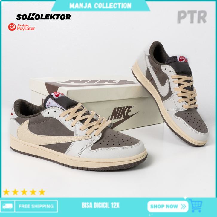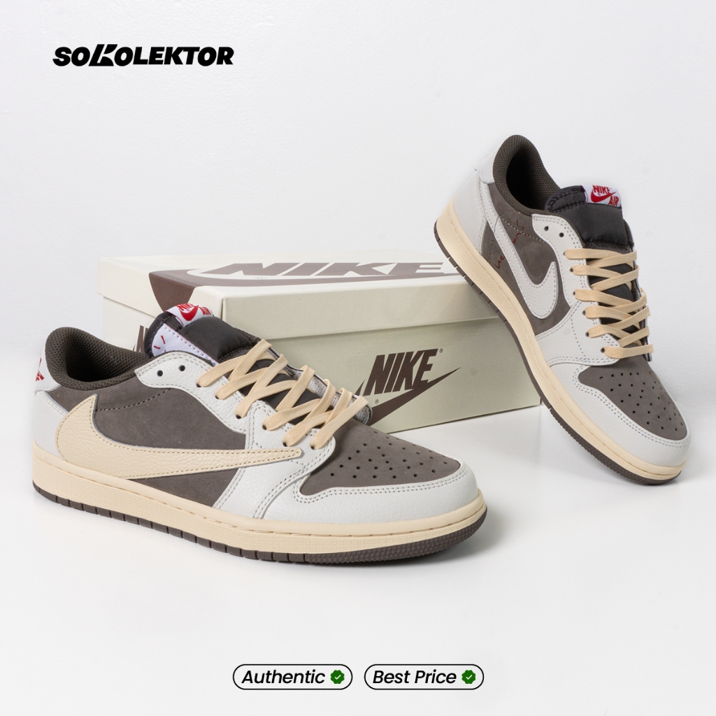 nike original store Sepatu Sneaker Pria Air Jordan 1 Retro Low OG SP Travis Scott Olive Sail University Red Black