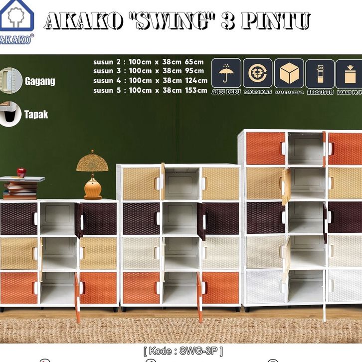 Lemari Plastik Akako Swing 3 Pintu 2 TINGKAT Lemari Baju Plastik
