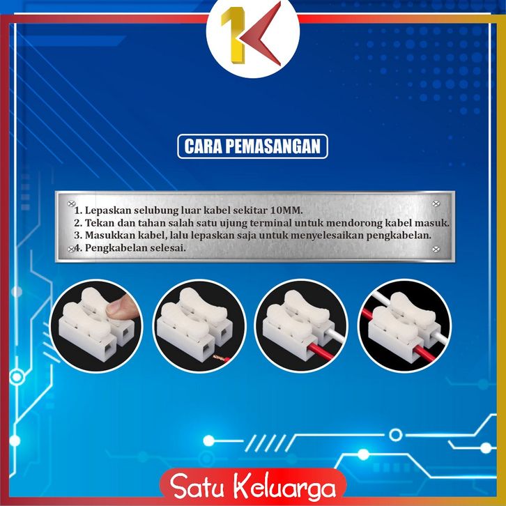 SK-C1077 Konektor Kabel Listrik 2pin 3pin Quick Connect Terminal Block Cable / 2 Wire Connector Spring Terminal Sambung