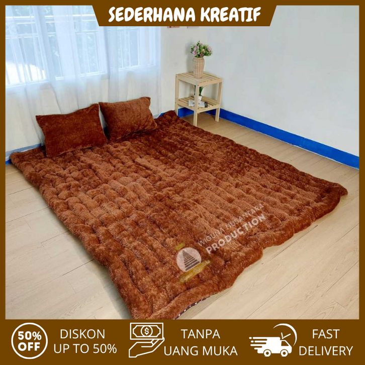 KASUR LANTAI GENDER KASUR BULU KARPET EMPUK BULU RASFUR SURPET SUDAH SAMA 2 BANTAL