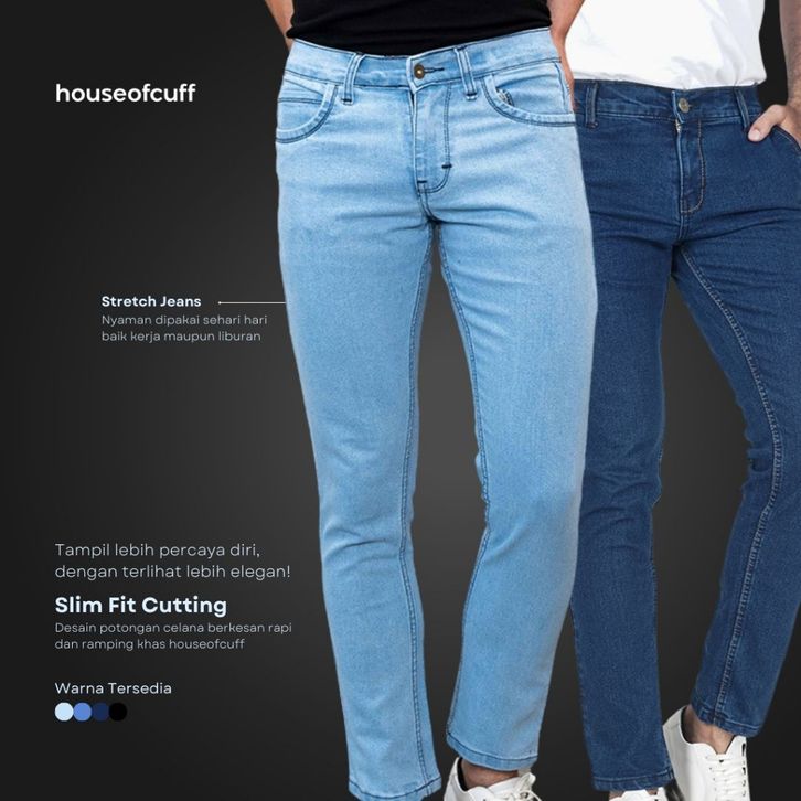 Celana panjang Jeans Slim Fit biru pudar denim pants pria houseofcuff