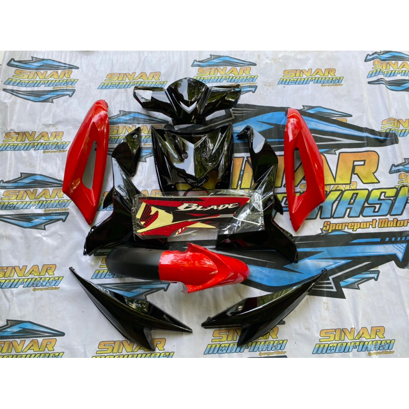 Cover Bodi Full Body Halus Honda Blade 110 R Lama 2008 2010 Merah Silver Hitam Berstriping